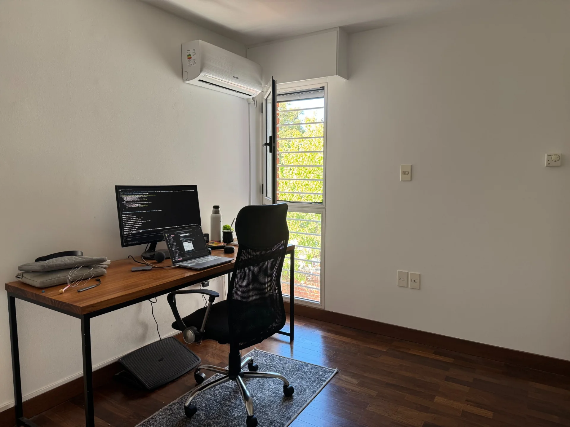 Equipado con aire acondicionado en el living y en cada dormitorio, calefacción por losa eléctrica, calefón en cada baño y en la cocina