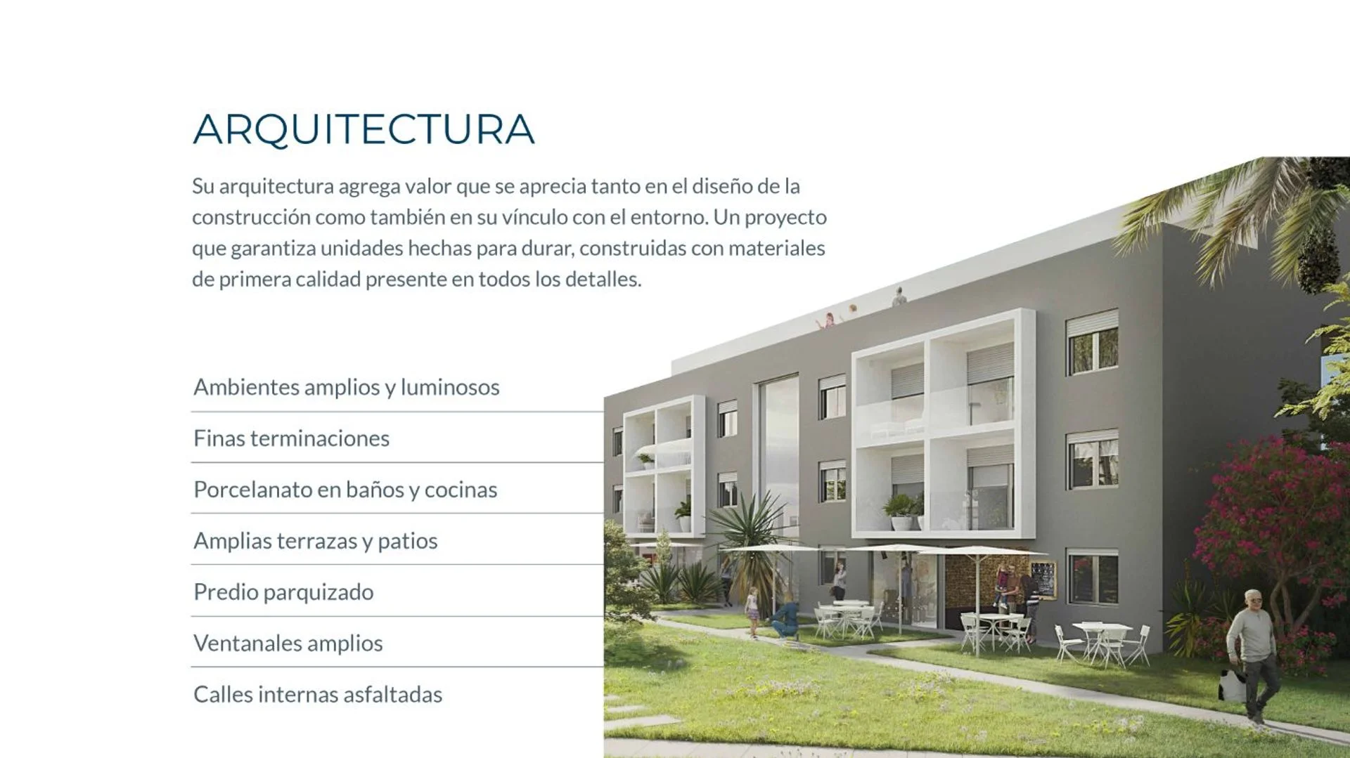 Características principales del inmueble: amplios espacios, dos dormitorios con persianas, aberturas en toda la unidad en DVH (vidrio doble), terraza lavadero, luminosidad, jardín de uso exclusivo, estacionamiento, barrio vigilado con circuito de cámaras y monitoreo de Securitas.