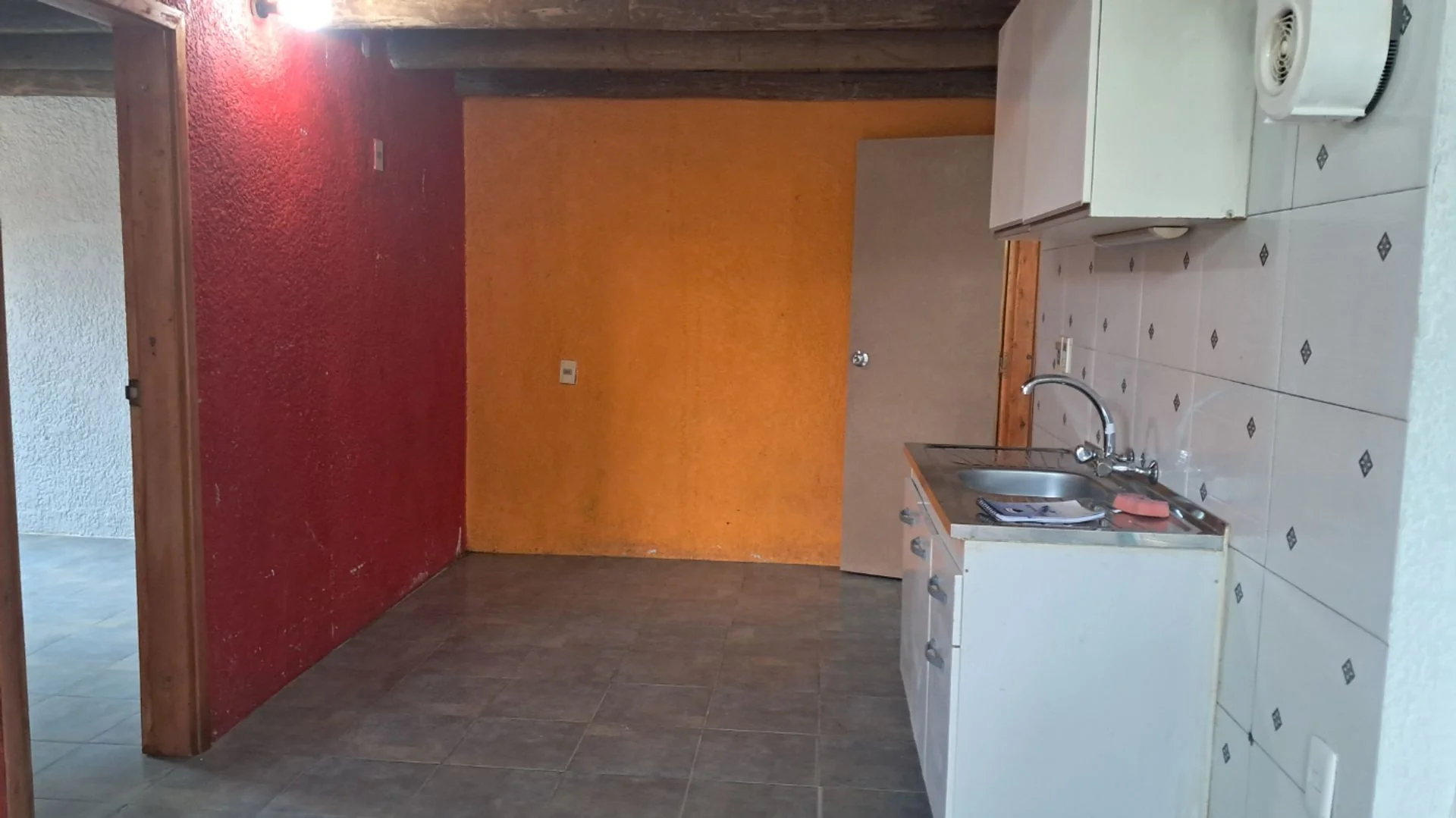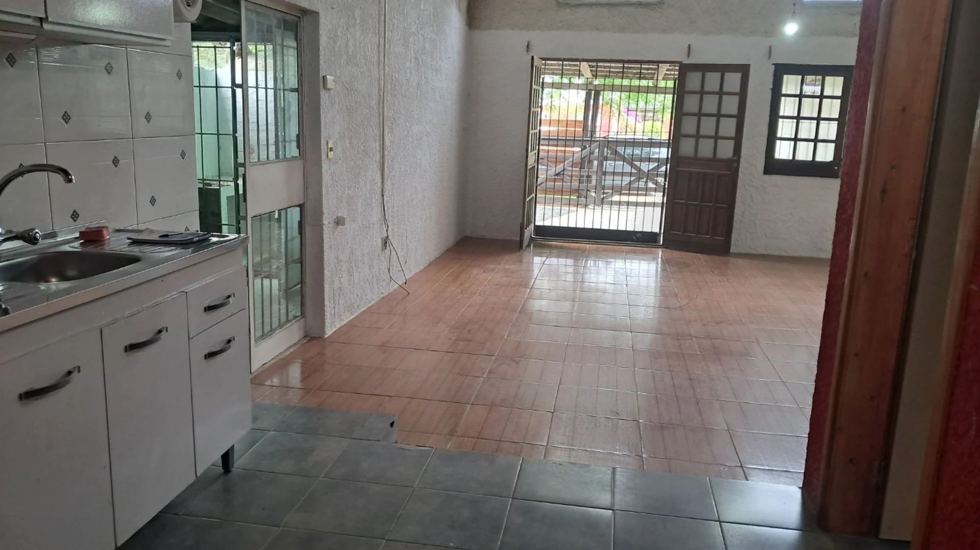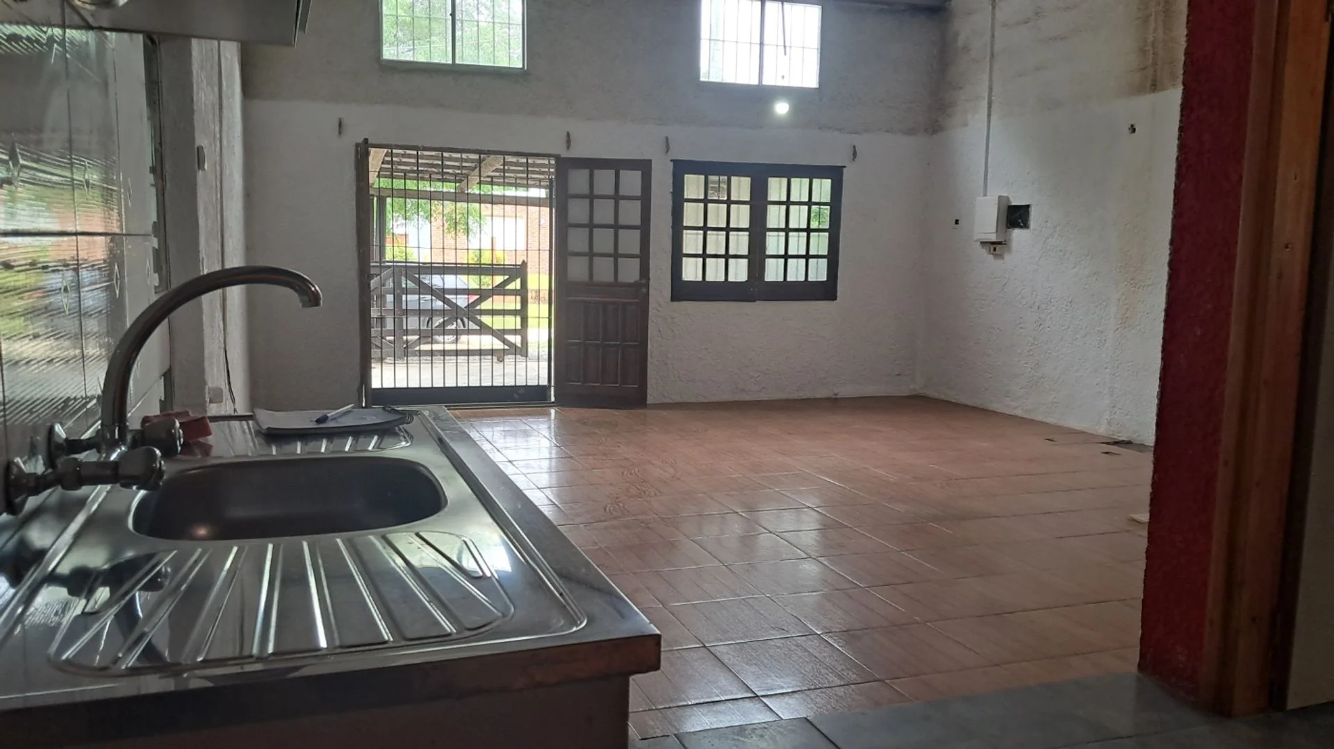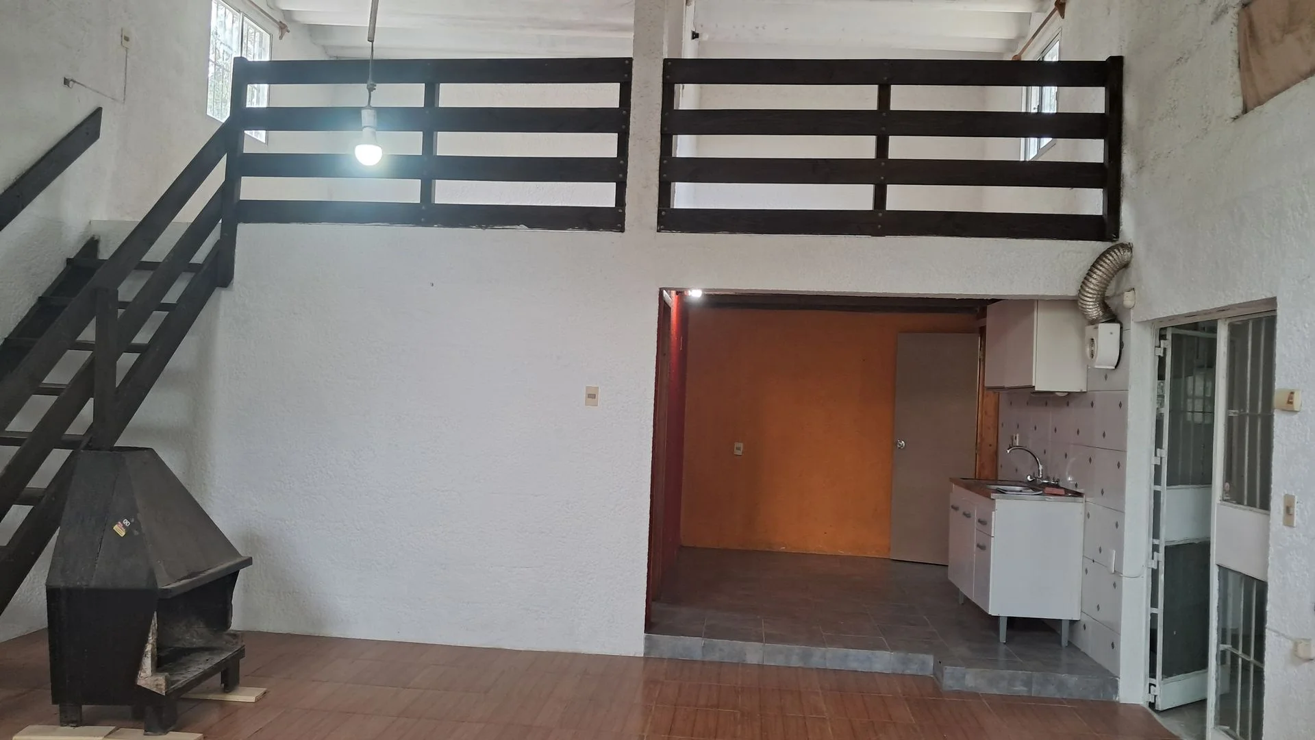 En la planta baja integrado al living tenemos la cocina con su mueble bajo mesada y de ahí nos podemos dirigir al baño y a uno de los dormitorios.