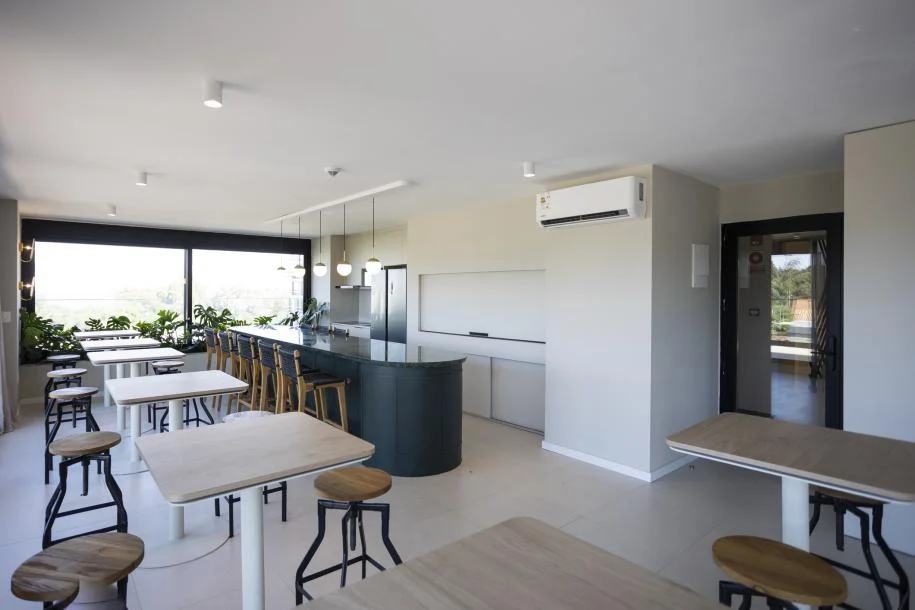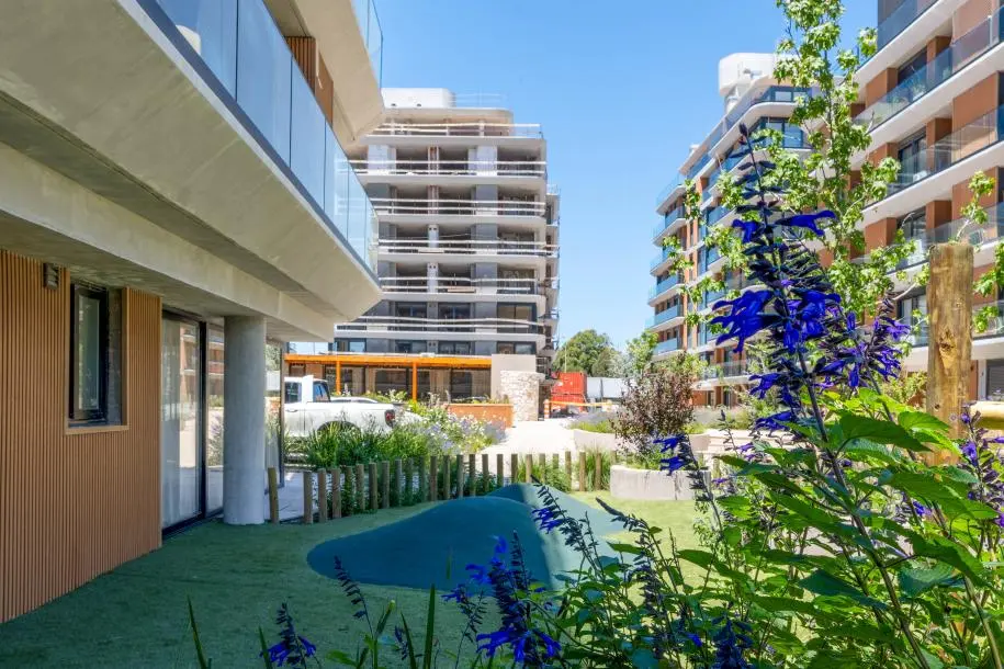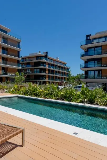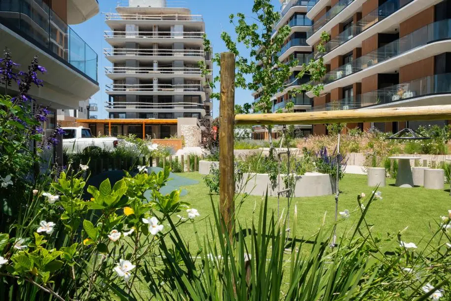 El desarrollo está conformado por cinco \"villages\" de apartamentos de 1 a 4 dormitorios, implantados en un terreno de 7.500 m2 con más de 1.500 m2 de áreas verdes y espacios compartidos.