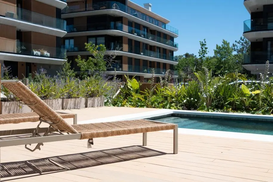 Entre sus amenities se destacan: piscina con solárium, gimnasio interior y exterior, barbacoas, rooftop con SUM y terraza, Pool Bar & Grill, Marea Bar, paseos ajardinados, zona de juegos para niños, Kids Club, seguridad 24h, cocheras exteriores y garajes en subsuelo.
