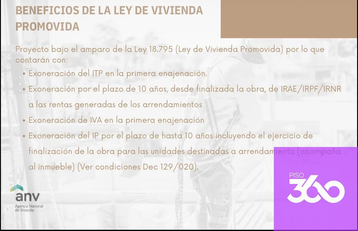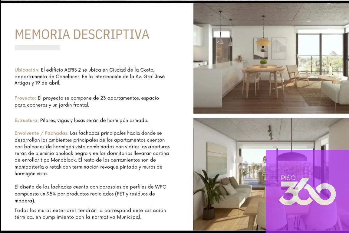 AERIS 2 | OPORTUNIDAD PARA VIVIR O INVERTIR | LEY PROMOVIDAApartamentos en San José de Carrasco – Ciudad de la CostaEntrega: Septiembre / Octubre 2027Unidades de 1 y 2 dormitoriosDesde USD 149.500⸻Beneficios Ley de Vivienda Promovida✔️ Exoneración de ITP (2%)✔️ Exoneración de IVA✔️ Sin IRPF/IRAE por alquileres (10 años)✔️ Sin Impuesto al Patrimonio (10 años)Ideal para invertir con alta rentabilidad o comprar tu vivienda con beneficios fiscales⸻Financiación • 20% reserva • 70% en obra • 10% ocupación⸻ Adicionales • Cochera: USD 7.500 • Gastos ocupación: 4% • Comisión: 3% + IVA⸻ Unidades limitadas en lanzamientoConsultá por planos y disponibilidad