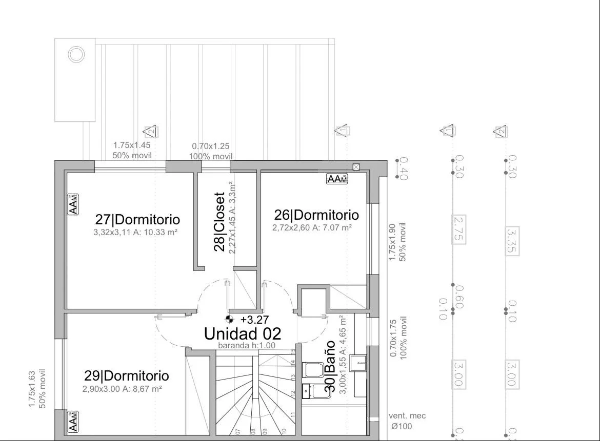 En planta alta: 3 dormitorios, Muy buenos placares y muy luminosos. 1 baño amplio de muy buen tamaño