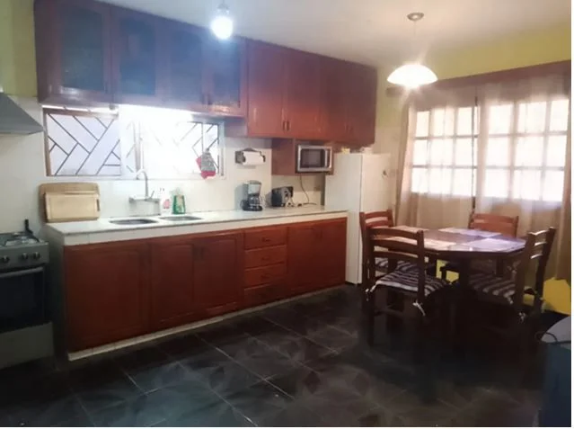 Planta Baja: Living comedor con estufa tradicional / Cocina con comedor diario y estufa / 2 ventiladores / 1 dormitorio para tres 3 personas / Lavadero / Parrillero y Barbacoa / Porche / Baño completo. Cocina bien equipada: heladera, cocina a súper gas con horno eléctrico, microondas, jarra eléctrica, cafetera, etc. Vajilla para 10 personas. Área de servicio: lavarropas y heladera auxiliar con frezzer.