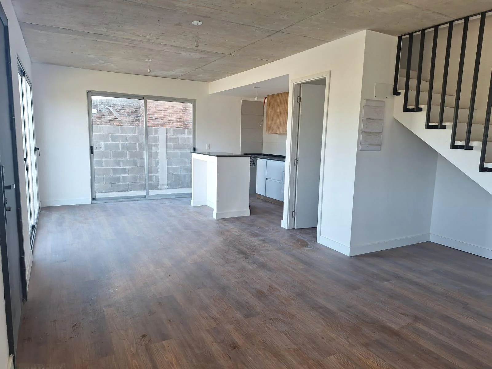 Living comedor con cocina integrada y baño social.