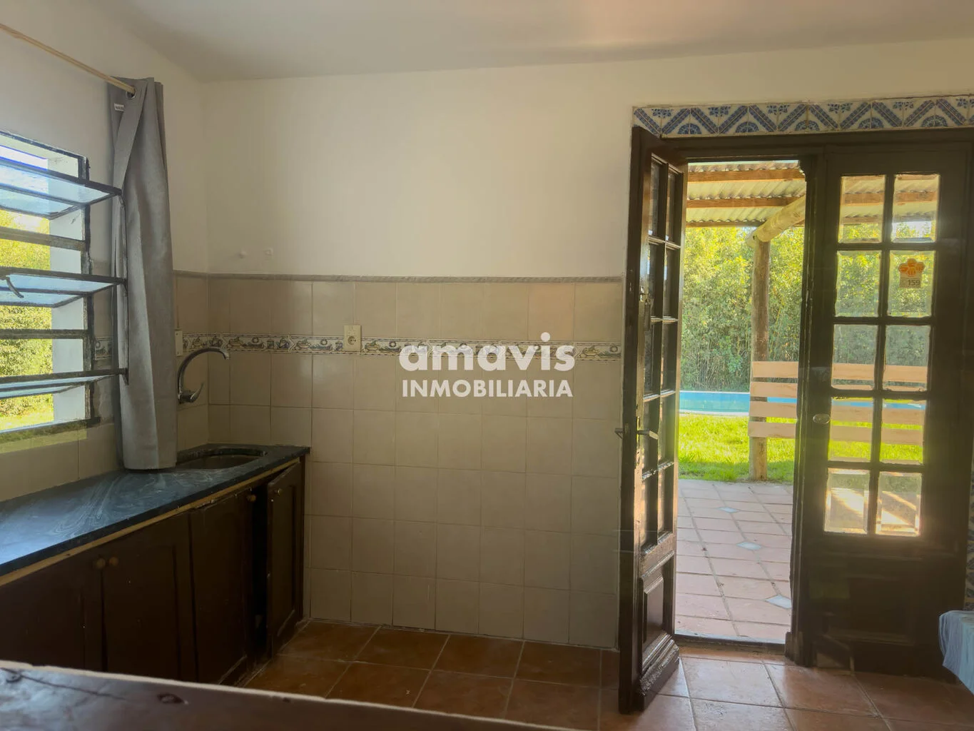 Chalet en El Pinar Sur próximo a la playa y arroyo Sobre Avenida Principal asfaltada Padrón esquina en altura con respecto a nivel de calle Construcción realizada en 2 etapas Amplio living con estufa a leña de hierro y grandes ventanales Comedor con estufa a leña tradicional Cocina con pasaplatos y salida al fondo Dormitorio en suite con baño y vestidor Dormitorio con estufa a leña al frente Dormitorio al fondo Baño Jardín al frente y fondo Piscina a reparar Parrillero con techado liviano Espacio para guardar vehículo Galpón Cerramiento perimetral y cerco natural Apta para préstamo bancario