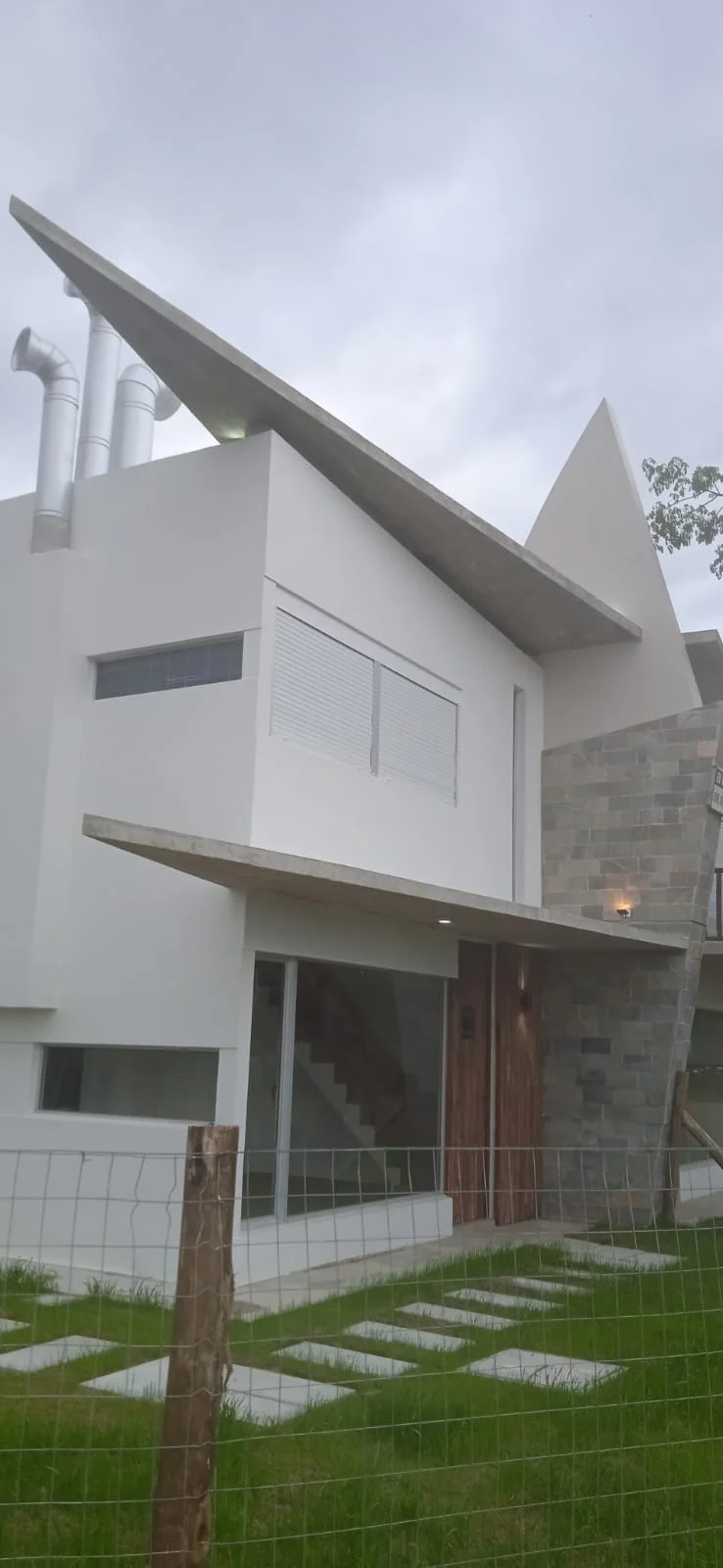 Casa con líneas dinámicas y con un estilo rústico en su presentación.