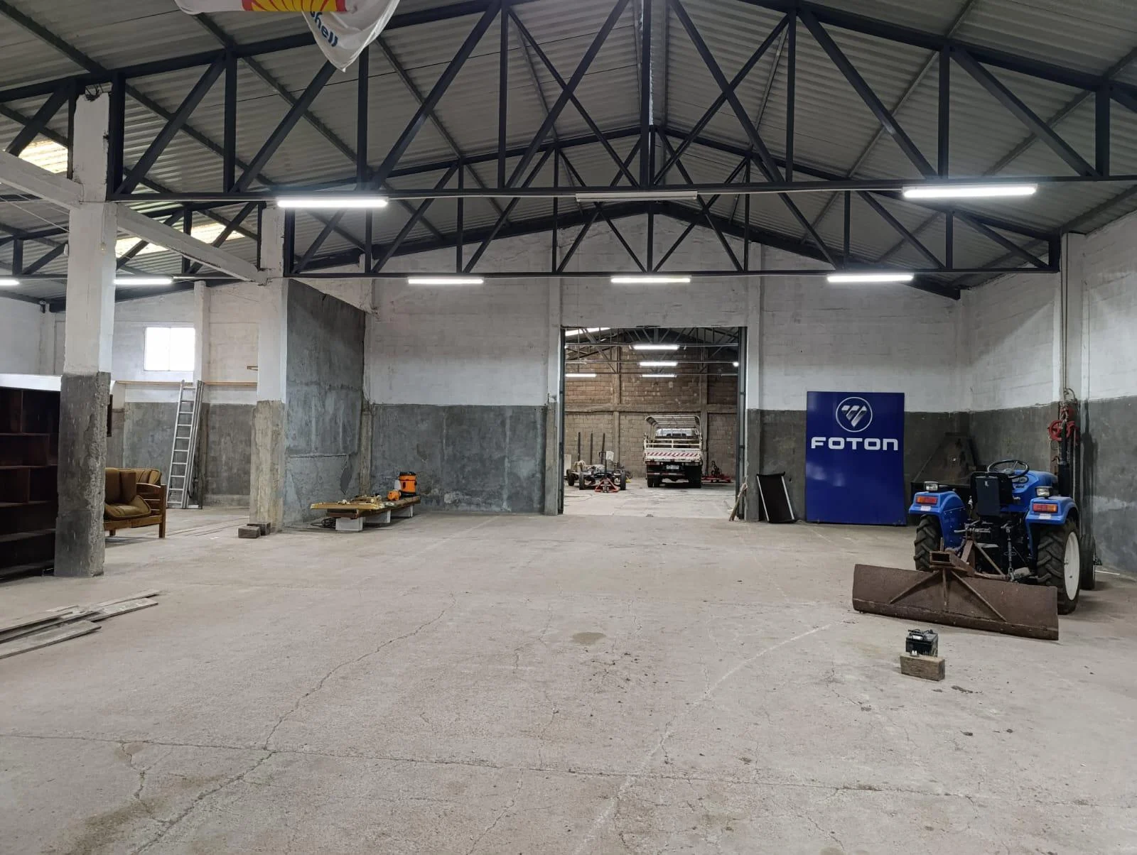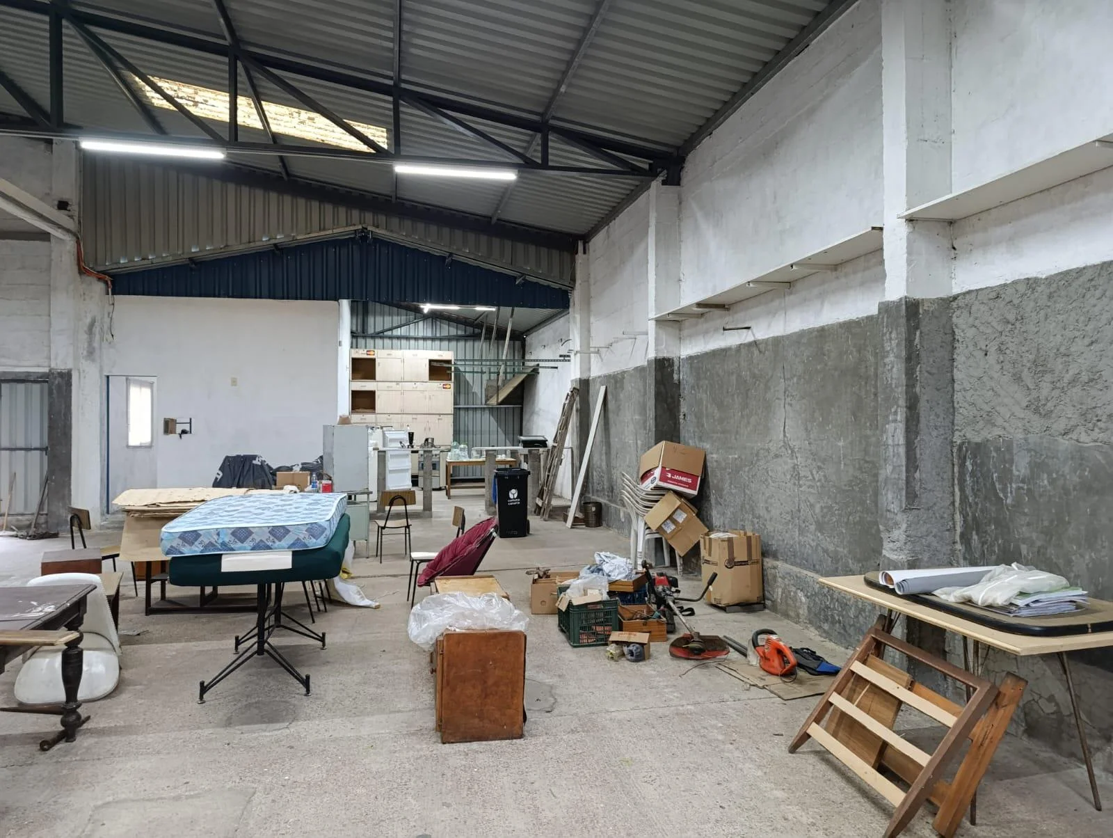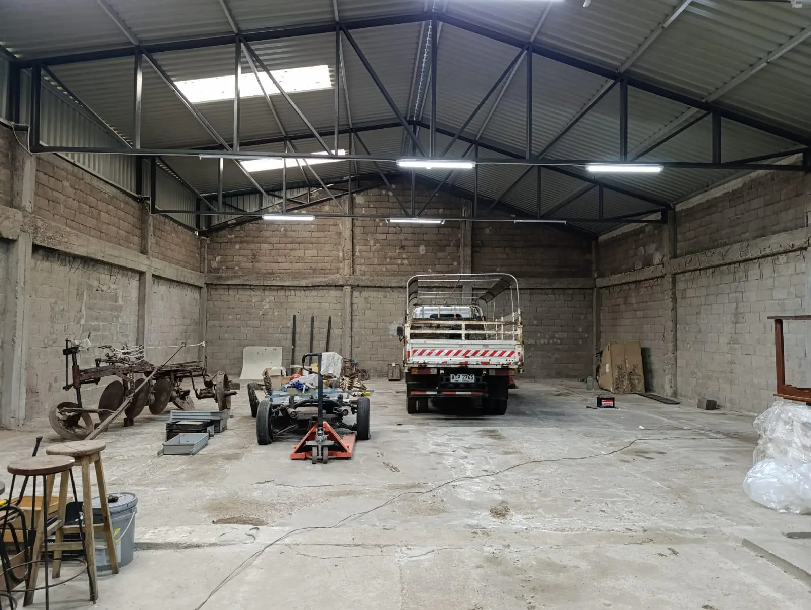 El galpón está equipado con modernas medidas de seguridad, incluyendo cámaras, alarma y un sistema contra incendios con depósito de agua. Además, dispone de un vestuario completo con dos baños, ducha y calefón, así como un área con barra que puede funcionar como comedor. Los tres portones de acceso (lateral, frontal y trasero) permiten la entrada de vehículos de gran porte. Una característica destacable es la posibilidad de dividir el galpón en dos espacios independientes, gracias a un portón central, lo que lo convierte en una opción ideal para operaciones de dos empresas simultáneamente.