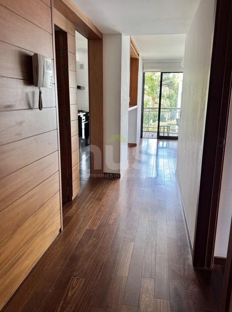 Hall de entrada, amplio living con estufa y terraza con parrillero, baño social.
