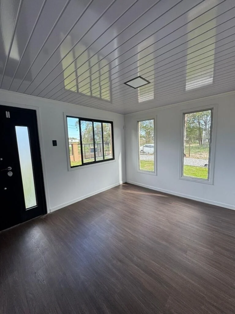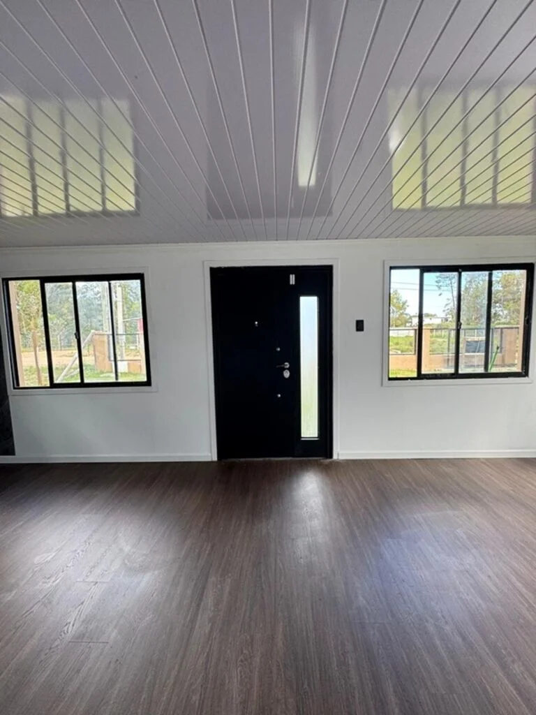 Todas las aberturas de la casa son de aluminio, los pisos del living, pasillo y dormitorios son flotantes de alto transito, la puerta de entrada es semiblindada. Construcción en Steel framing, paredes y techos con doble aislante!