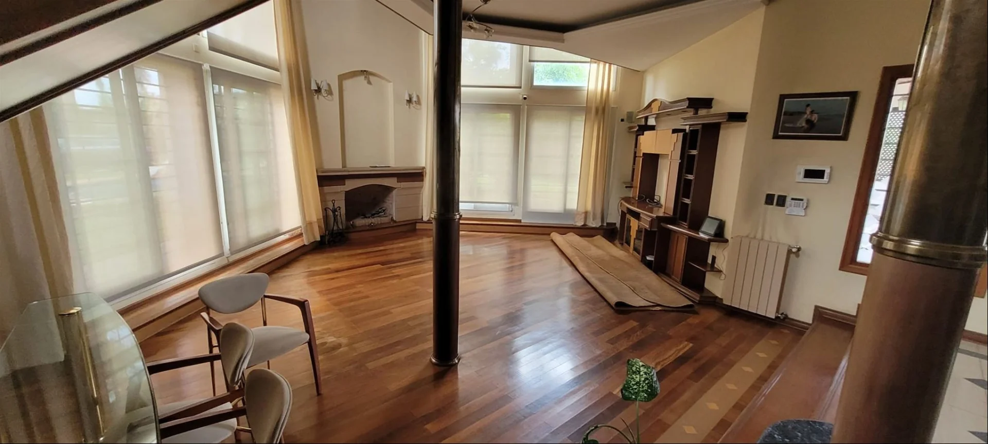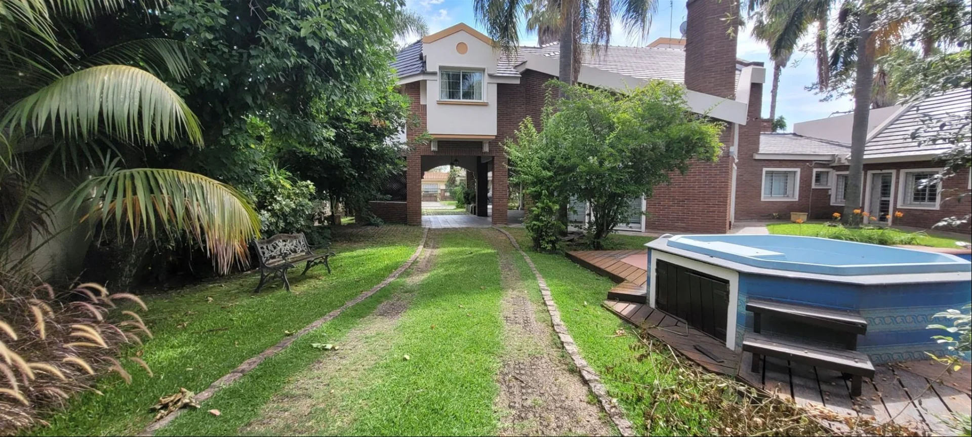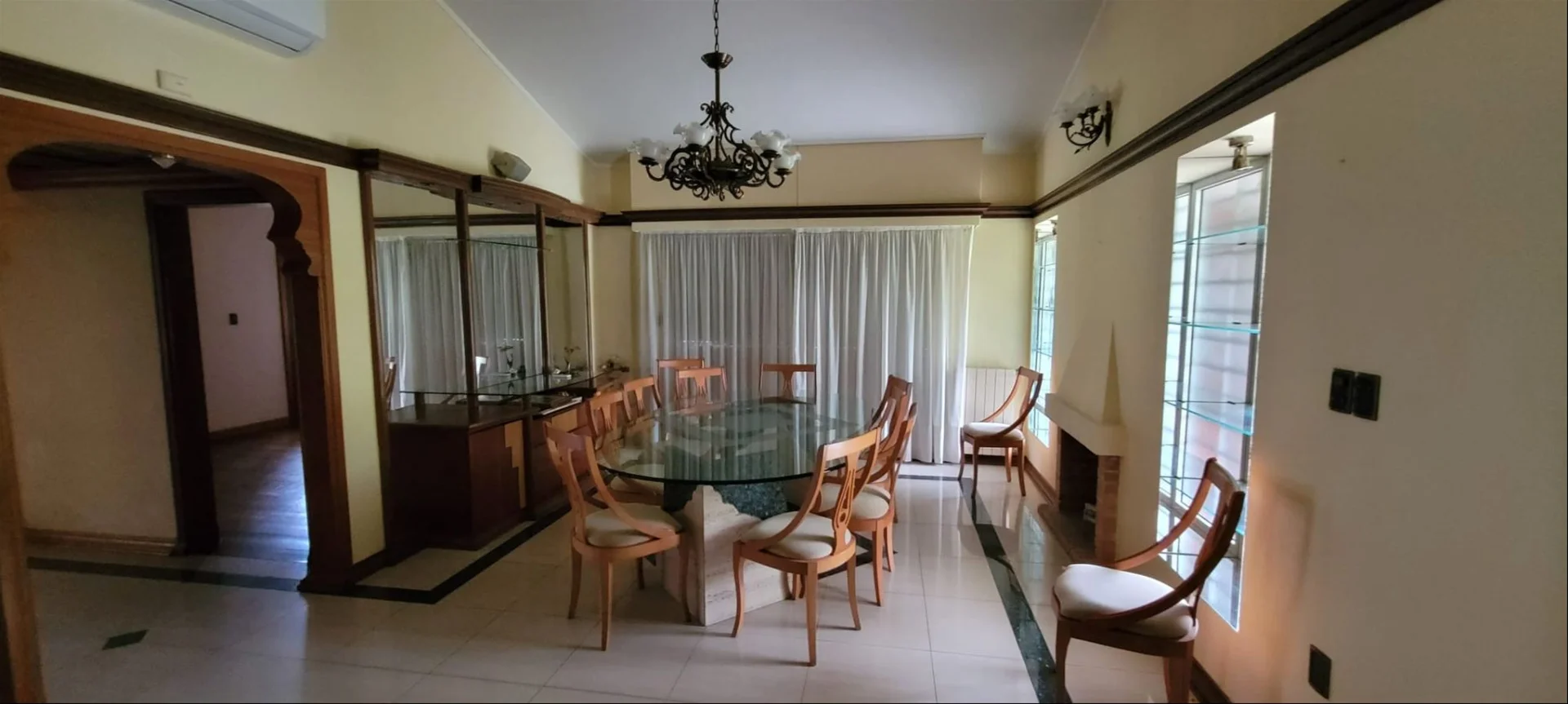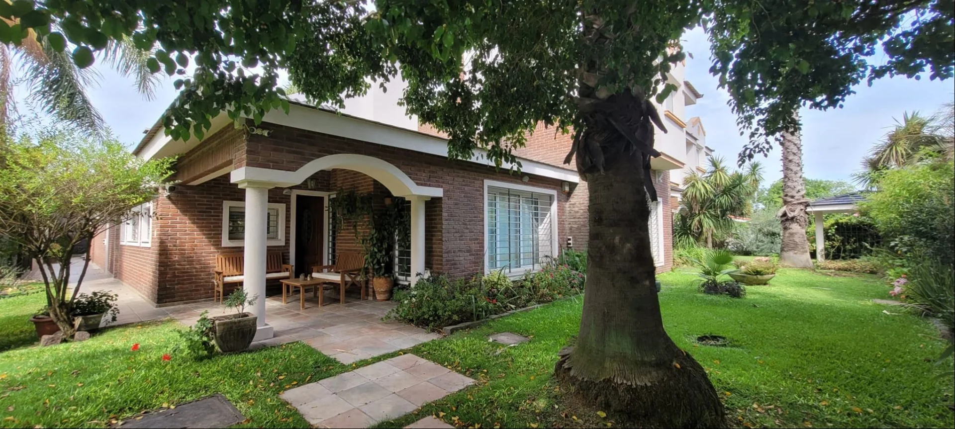 Descubra esta impresionante casa en venta, una residencia de estilo tradicional que fusiona la elegancia clásica con comodidades modernas. Desarrollada en 2 pisos, 5 dormitorios y 3 baños y capacidad para 4 vehículos en su garaje, además de una habitación de servicio con baño, esta propiedad de entre 30 años de antigüedad, se presenta como una oportunidad excepcional para quienes buscan sofisticación y grandes espacios. En su interior, encontrará amplios y luminosos ambientes que incluyen un comedor formal, ideal para recepciones. La cocina integral está completamente equipada y cuenta con mesadas de granito, ofreciendo un diseño funcional y estético. El living en desnivel se destaca por su chimenea, creando un ambiente cálido y relajante. Los grandes ventanales permiten una excelente ventilación natural y bañan cada zona con luz del sol. Esta residencia presenta acabados de alta calidad, tanto en pisos como en sus detalles en madera, que realzan su estilo. Además, dispone de aire acondicionado en cada ambiente, garantizando confort en todas las estaciones. En su exterior, una fachada distintiva de ladrillo y revoque es realzada por un exuberante parque de zonas verdes, proporcionando un entorno sereno y privado. Una casa que combina lujo y funcionalidad de manera sublime.
