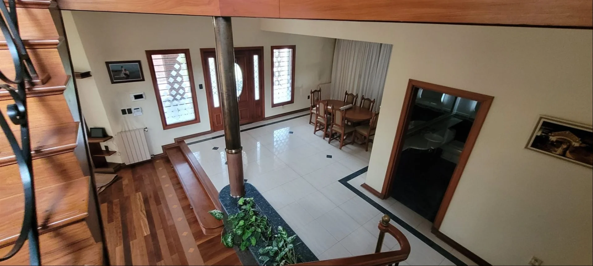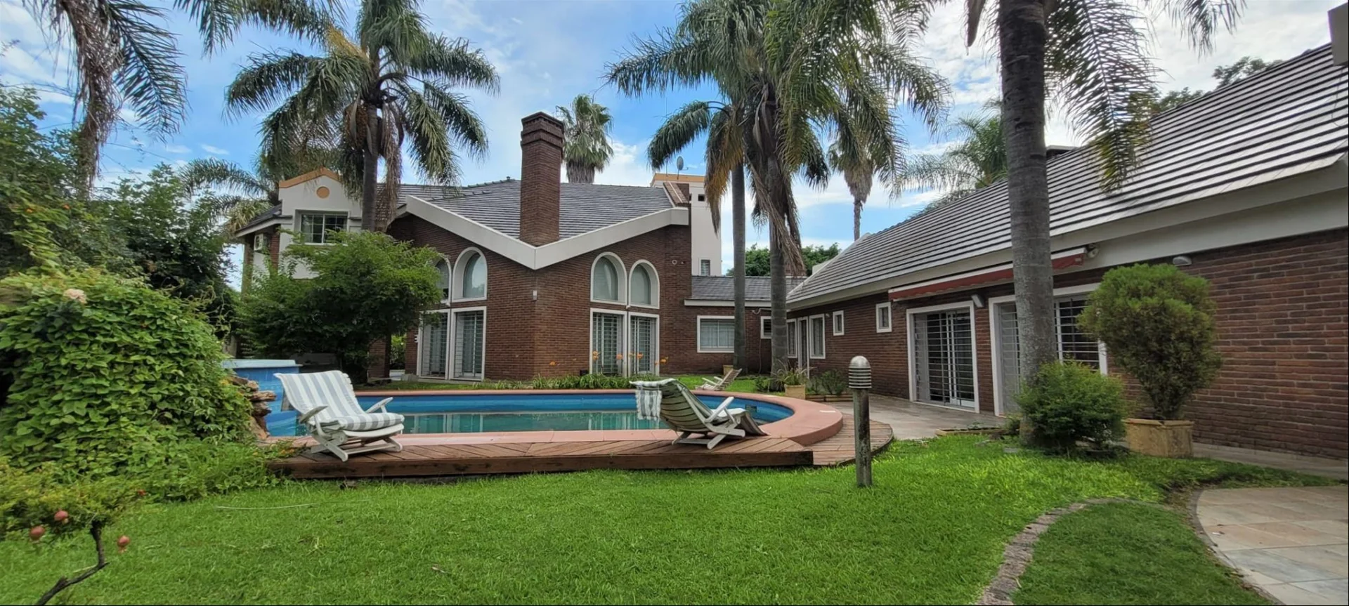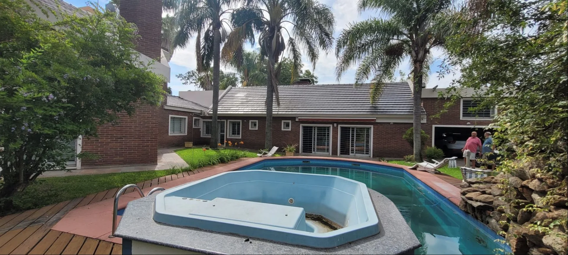 Descubra esta impresionante casa en venta, una residencia de estilo tradicional que fusiona la elegancia clásica con comodidades modernas. Desarrollada en 2 pisos, 5 dormitorios y 3 baños y capacidad para 4 vehículos en su garaje, además de una habitación de servicio con baño, esta propiedad de entre 30 años de antigüedad, se presenta como una oportunidad excepcional para quienes buscan sofisticación y grandes espacios. En su interior, encontrará amplios y luminosos ambientes que incluyen un comedor formal, ideal para recepciones. La cocina integral está completamente equipada y cuenta con mesadas de granito, ofreciendo un diseño funcional y estético. El living en desnivel se destaca por su chimenea, creando un ambiente cálido y relajante. Los grandes ventanales permiten una excelente ventilación natural y bañan cada zona con luz del sol. Esta residencia presenta acabados de alta calidad, tanto en pisos como en sus detalles en madera, que realzan su estilo. Además, dispone de aire acondicionado en cada ambiente, garantizando confort en todas las estaciones. En su exterior, una fachada distintiva de ladrillo y revoque es realzada por un exuberante parque de zonas verdes, proporcionando un entorno sereno y privado. Una casa que combina lujo y funcionalidad de manera sublime.