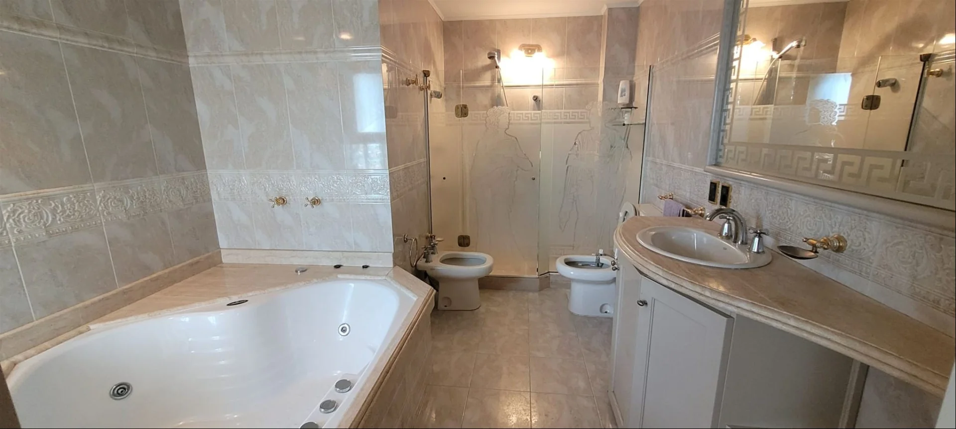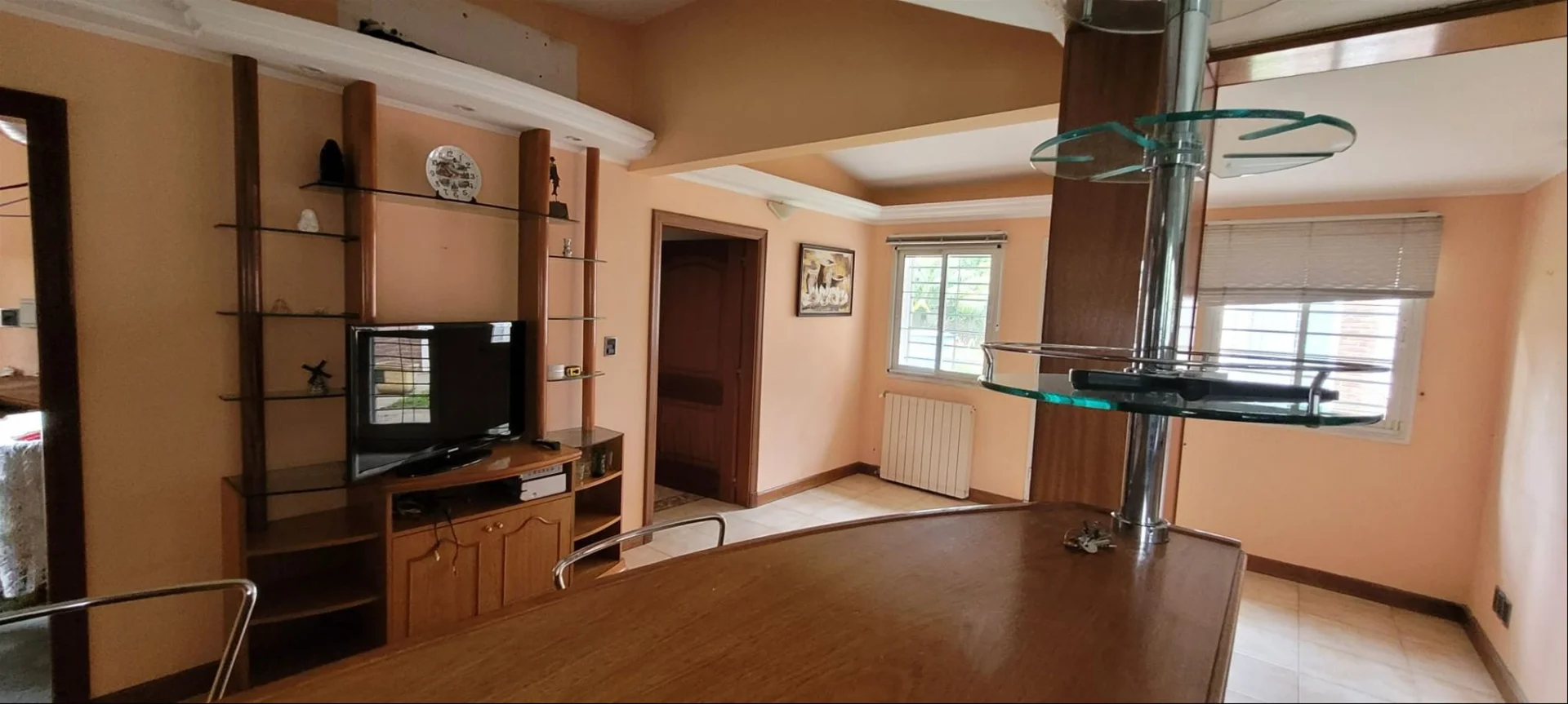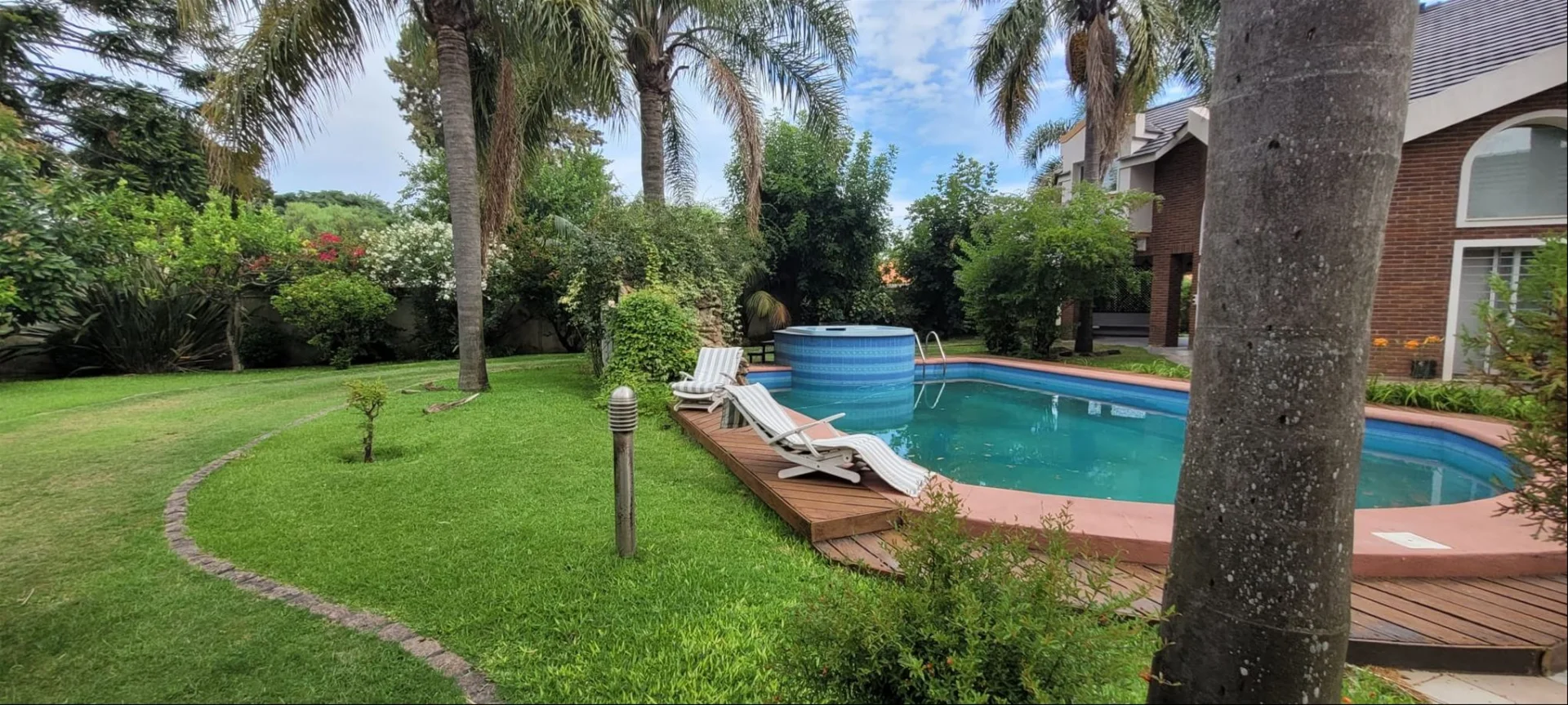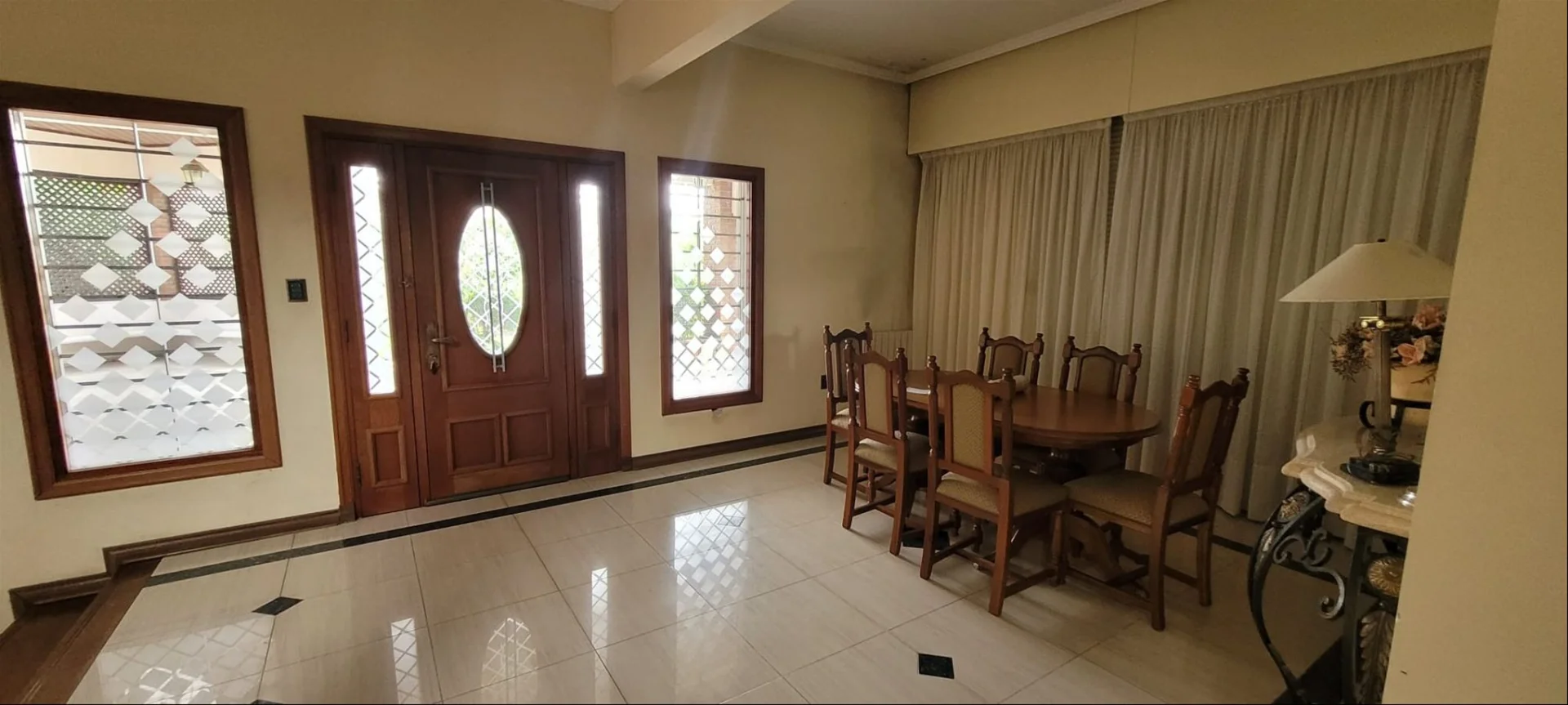 Descubra esta impresionante casa en venta, una residencia de estilo tradicional que fusiona la elegancia clásica con comodidades modernas. Desarrollada en 2 pisos, 5 dormitorios y 3 baños y capacidad para 4 vehículos en su garaje, además de una habitación de servicio con baño, esta propiedad de entre 30 años de antigüedad, se presenta como una oportunidad excepcional para quienes buscan sofisticación y grandes espacios. En su interior, encontrará amplios y luminosos ambientes que incluyen un comedor formal, ideal para recepciones. La cocina integral está completamente equipada y cuenta con mesadas de granito, ofreciendo un diseño funcional y estético. El living en desnivel se destaca por su chimenea, creando un ambiente cálido y relajante. Los grandes ventanales permiten una excelente ventilación natural y bañan cada zona con luz del sol. Esta residencia presenta acabados de alta calidad, tanto en pisos como en sus detalles en madera, que realzan su estilo. Además, dispone de aire acondicionado en cada ambiente, garantizando confort en todas las estaciones. En su exterior, una fachada distintiva de ladrillo y revoque es realzada por un exuberante parque de zonas verdes, proporcionando un entorno sereno y privado. Una casa que combina lujo y funcionalidad de manera sublime.
