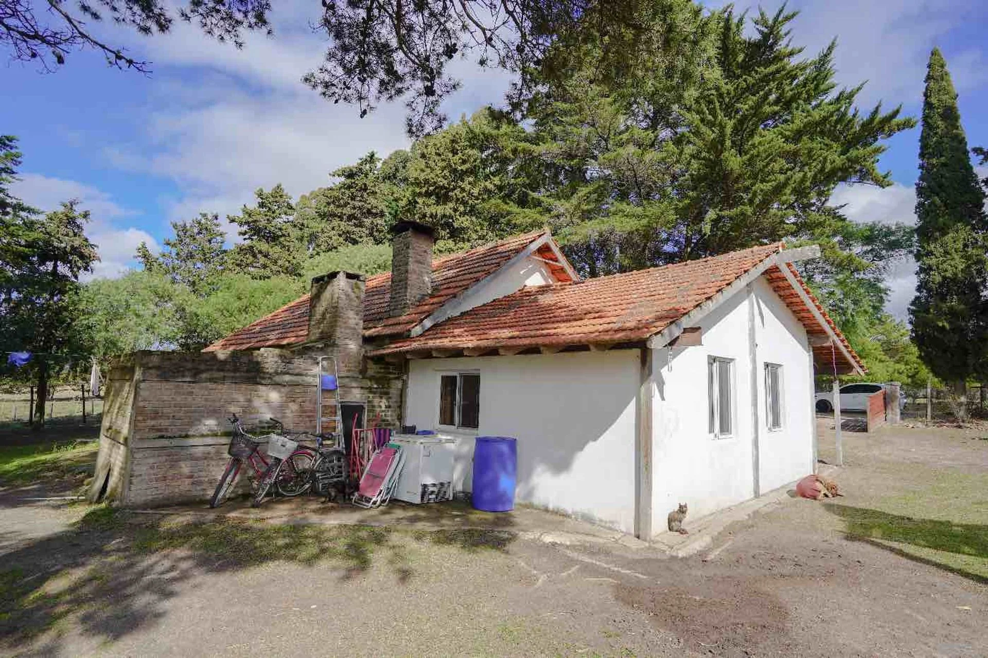 Se encuentra totalmente cercada y cuenta con una cálida y cómoda casa de 3 dormitorios, construida en material, con techo de tejas y en muy buen estado general, donde podrás disfruta de la calidez de una chimenea y los pisos de madera, mientras que la cocina y el comedor integrados te brindan la comodidad de un espacio funcional y acogedor.