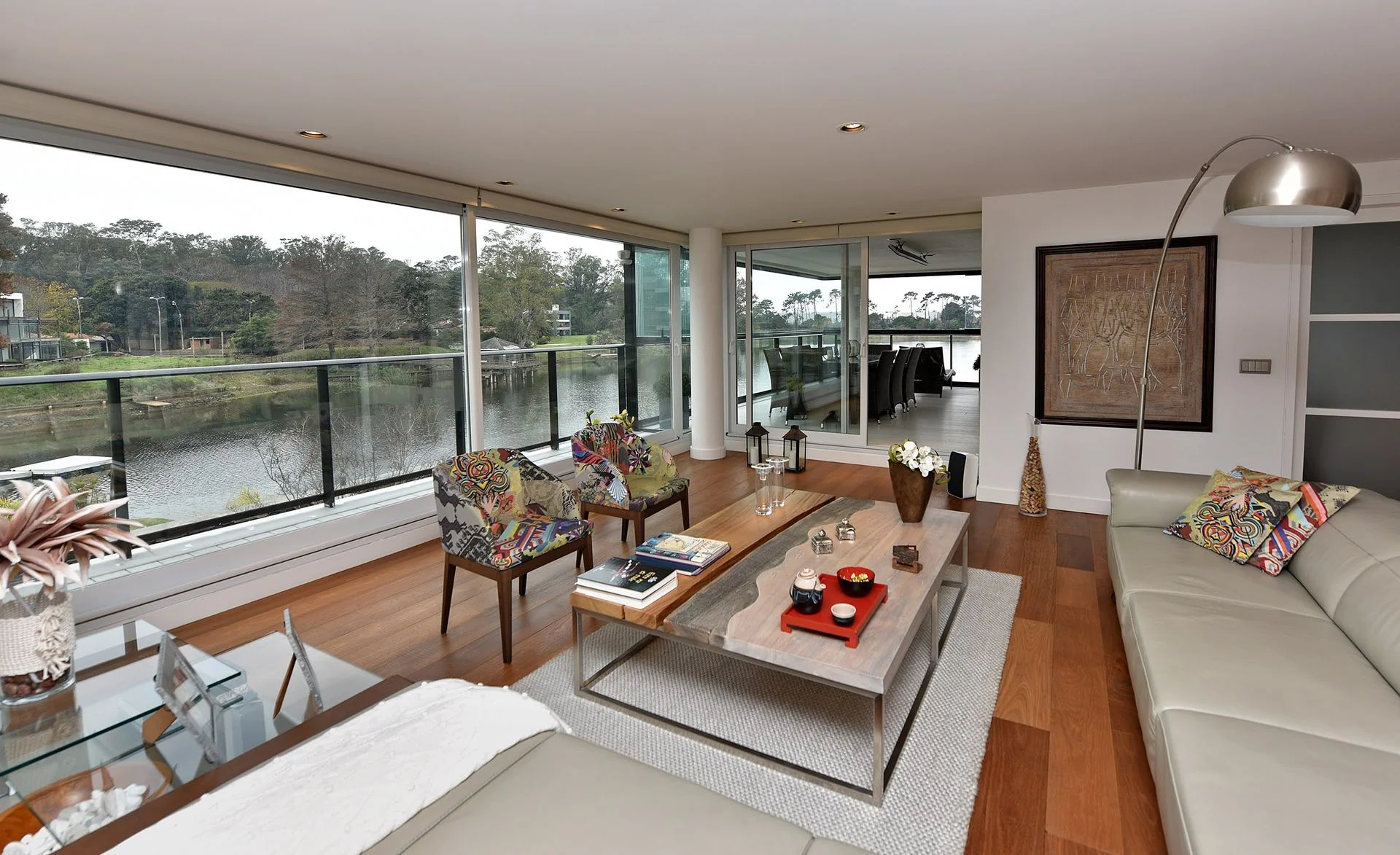 Living comedor con espectacular vista al lago.