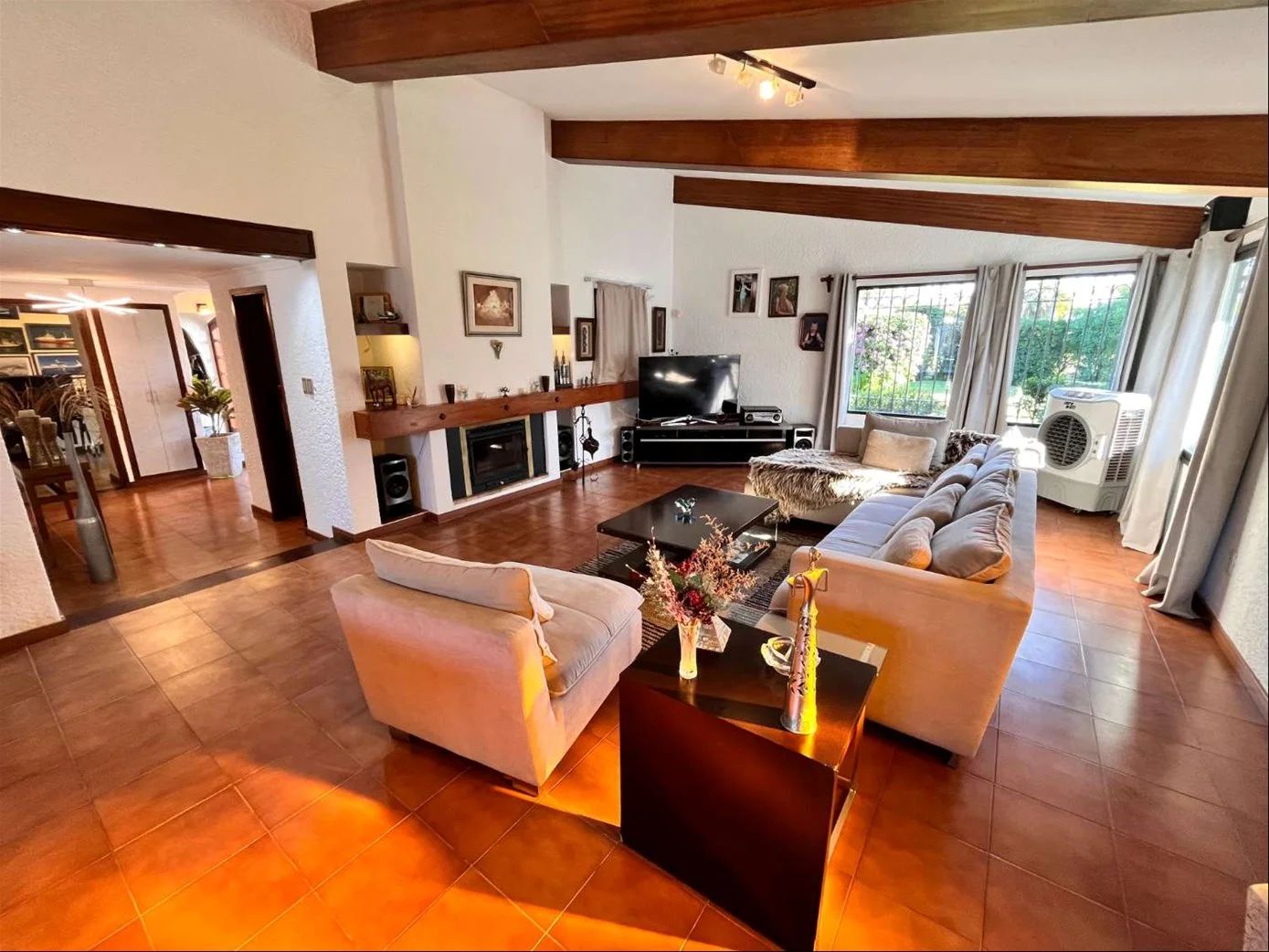 •Estar con estufa a leña, aire acondicionado y ventanales con DVH y rejas