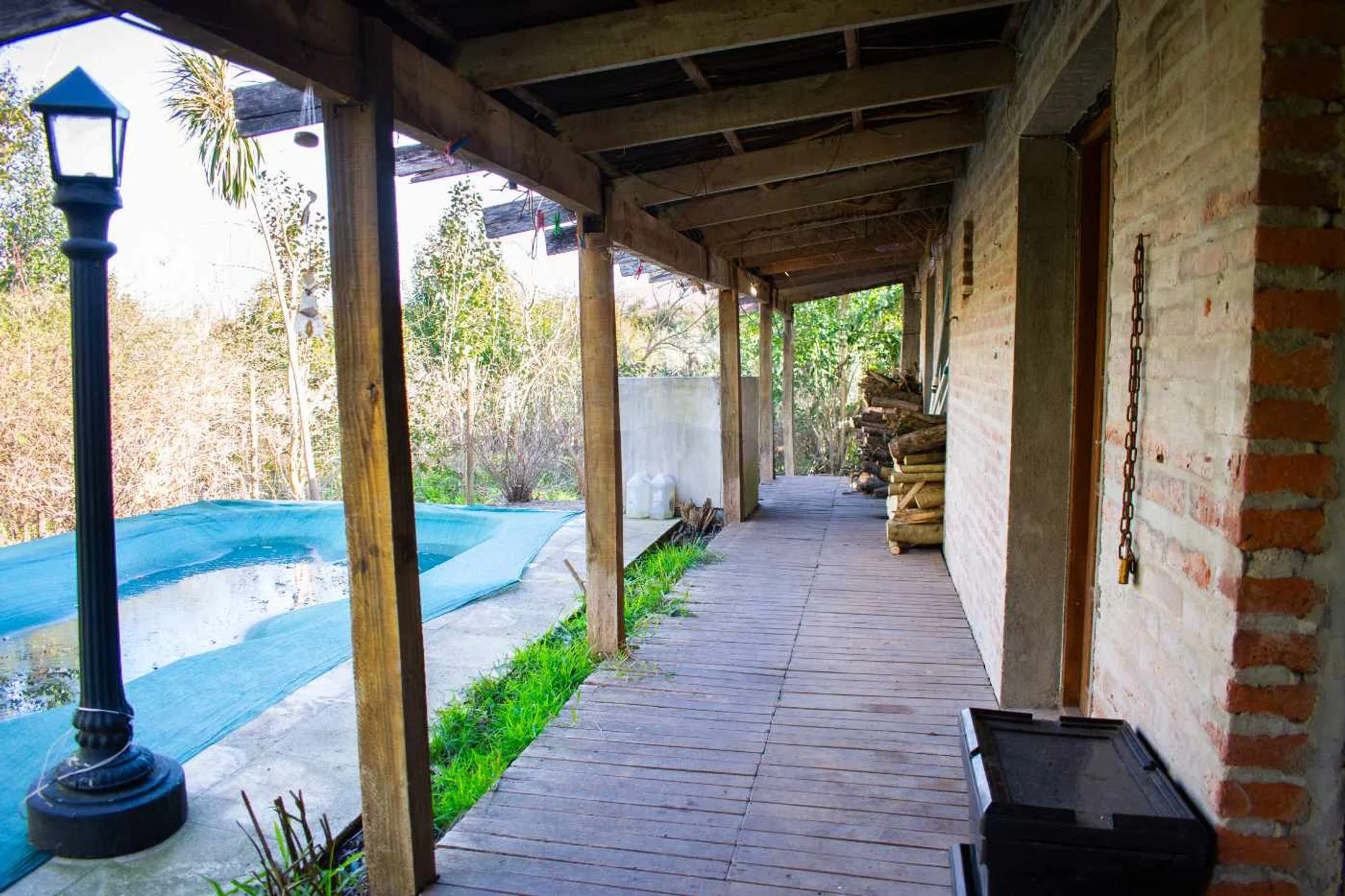 La casa se encuentra junto al camino vecinal en un entorno tranquilo y natural con un tajamar, vegetación, árboles y gran superficie verde.