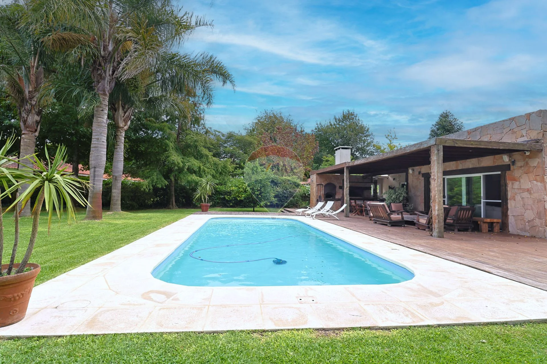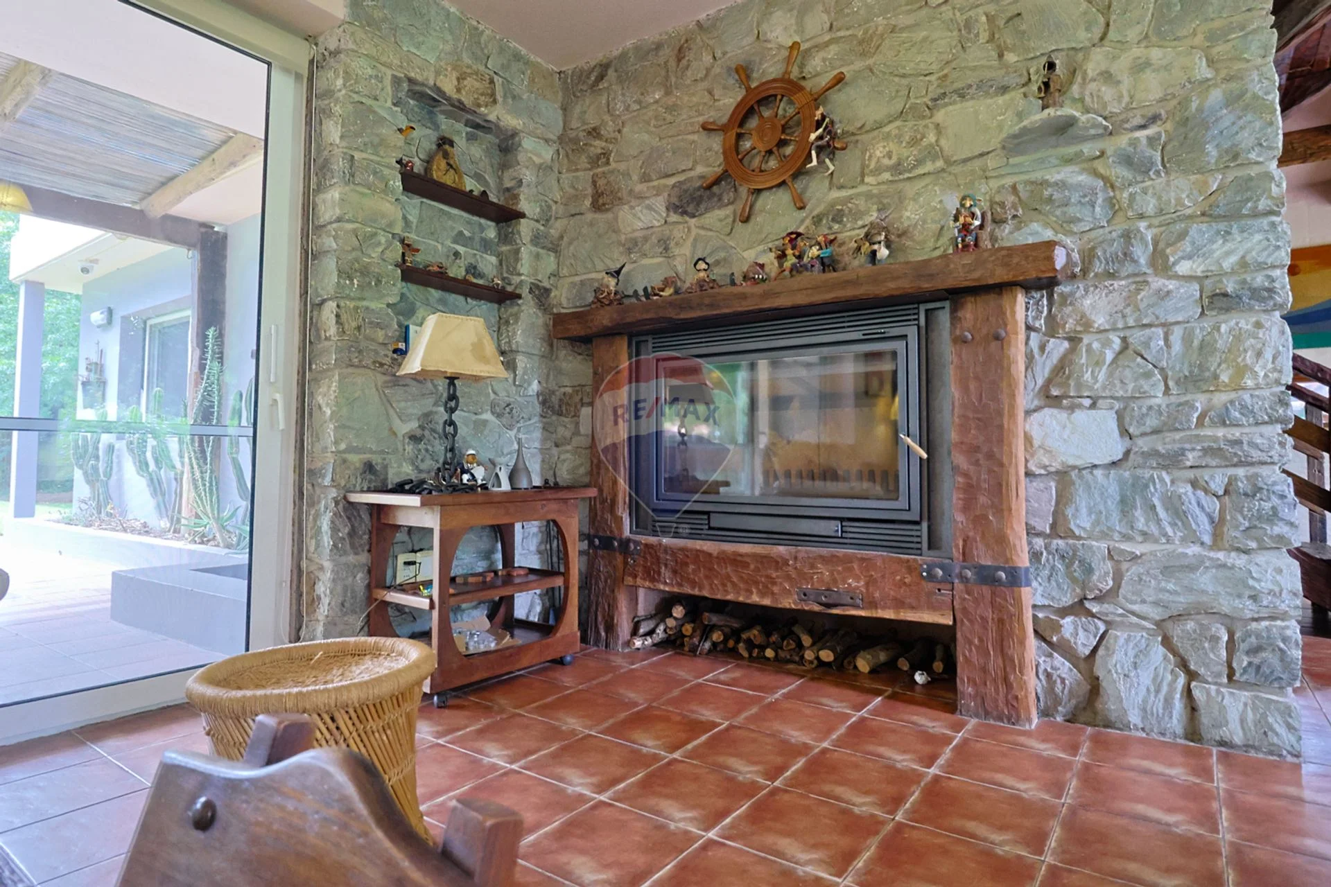 Parrillero amplio en piedra con horno de pizza sobre un gran deck de 100 m2 que nos comunica con la barbacoa o casa de huéspedes.