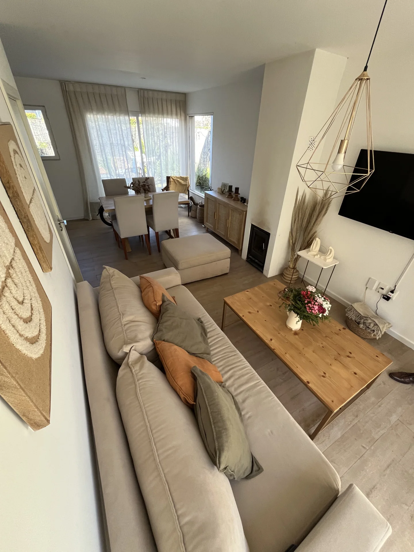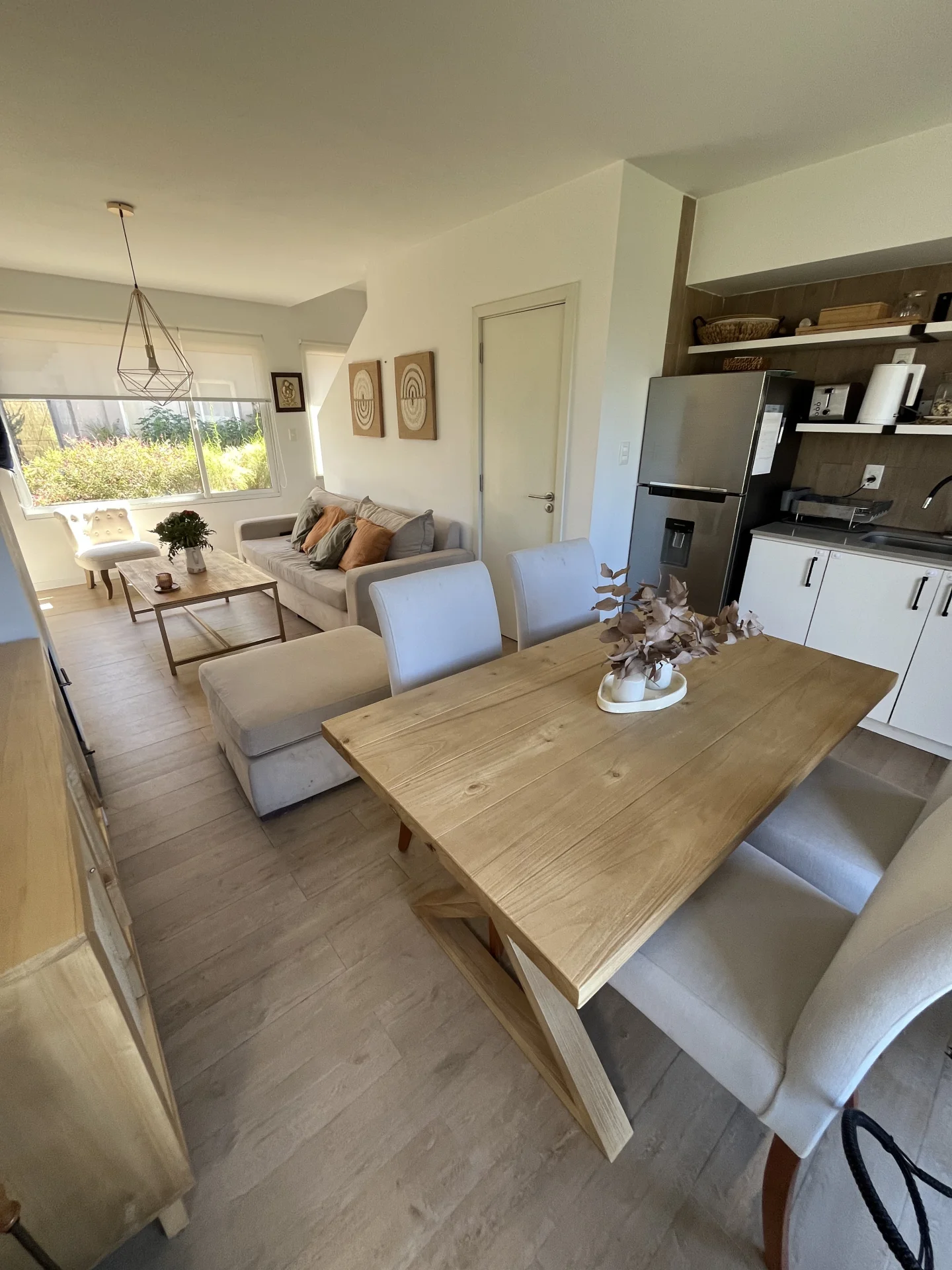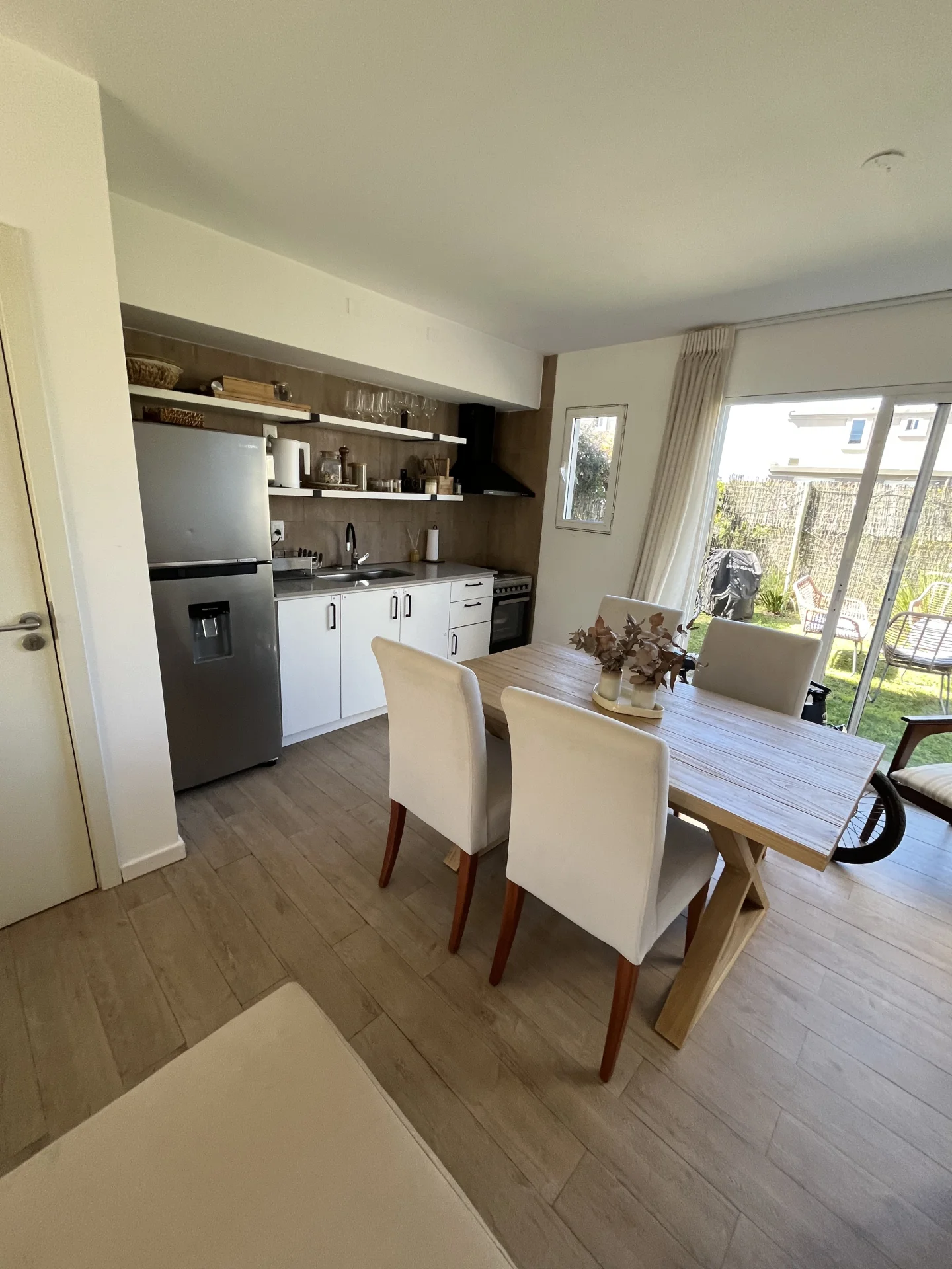 -Living comedor muy luminoso con cocina integrada. Salida al Patio por ventanal.