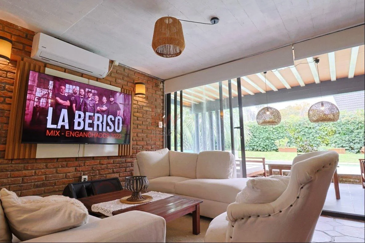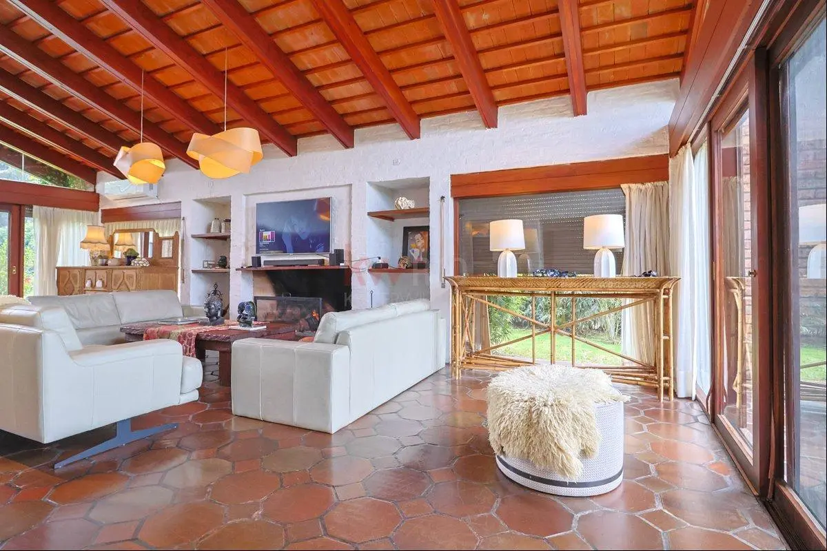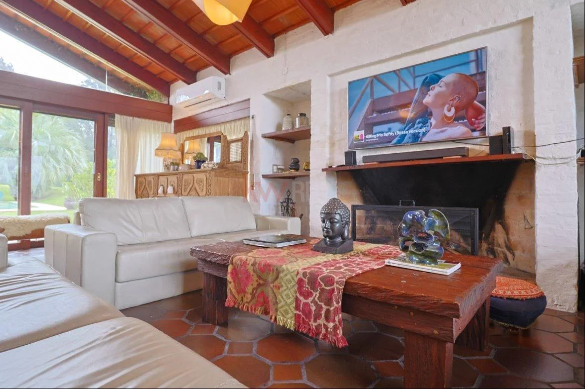 Una propiedad única por su arquitectura con carácter y calidez, ubicada en uno de los barriosprivados más exclusivos. Esta casa se distingue por su diseño original, con una fuerte presenciade madera de lapacho, los pisos son de gres porcelananico, techos altos y detalles constructivos que evocan el estilo country clásico,integrándose armoniosamente con la naturaleza.Características principales:Amplio living-comedor con estufa a leña y grandes ventanales que ofrecen luz natural y vistas alverde.Cocina definida con muebles en madera maciza y espacio de comedor diario.4 dormitorios todos con placares y finas terminaciones.5 baños en total.Suite principal con vestidor, baño completo amplia terraza de 100 m2.Barbacoa cerrada con parrillero doble y horno de pan, ideal para disfrutar todo el año.Jardín consolidado con riego automático.Garage cerrado con lugar para dos vehículos y área lavadero.Piscina de 4.5 por 10 metros de material.Bomba de calor.Depósito de guardadoGalería.Calefacción por losa radiante / estufa a leña / aires acondicionados.Esta casa es ideal para quienes buscan un hogar con personalidad, alejado de los diseñosestandarizados, rodeado de tranquilidad y seguridad.Coordine su visita y descubra un estilo de vida diferente en Lomas de La Tahona.