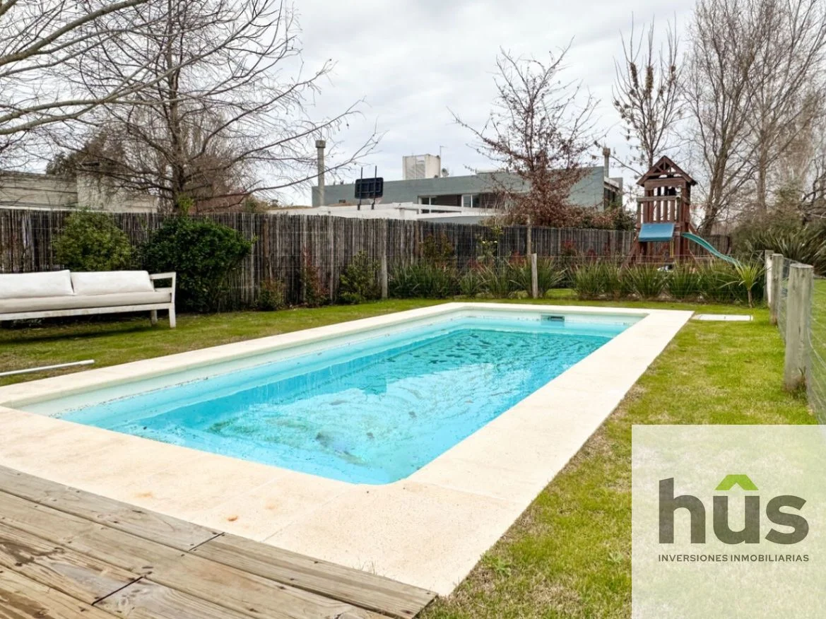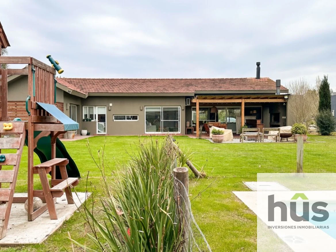 Oportunidad! casa muy práctica en impecable estado, muy luminosa y toda desarrollada en 1 planta. Hall de entrada, amplio living-comedor con estufa, baño social. Cocina con barra y práctico estar integrado. Lavadero independiente y o cuarto de servicio. Ala definida con tres dormitorios y dos baños, el principal en suite. Muy lindo alero con parrillero, piscina, amplio jardín orientado al Este.