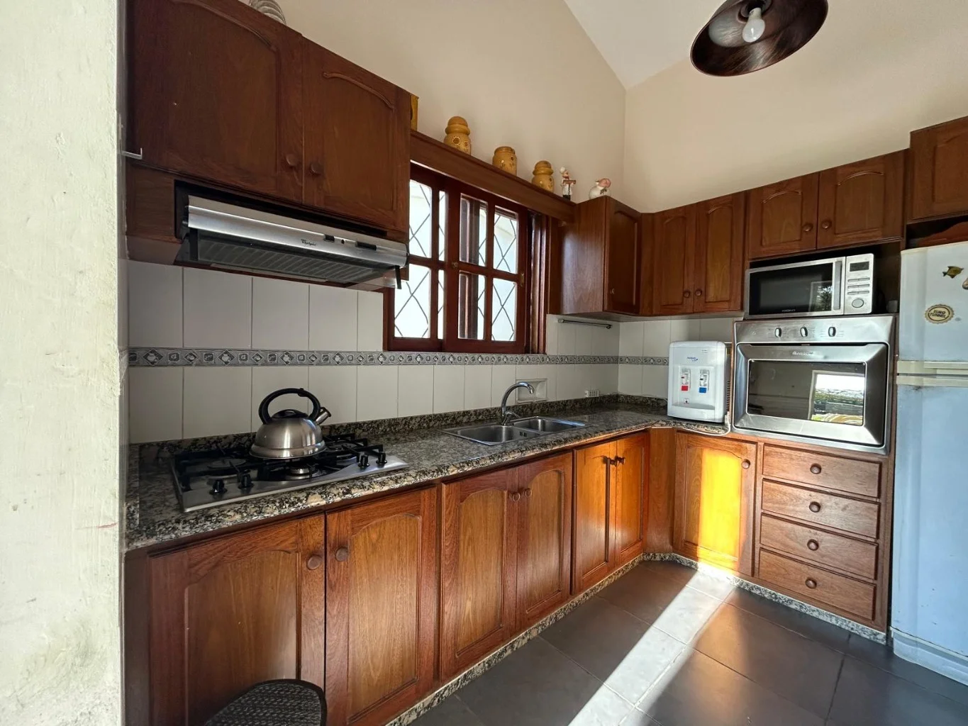 Cocina espaciosa con gas por cañería, anafe y horno empotrado.