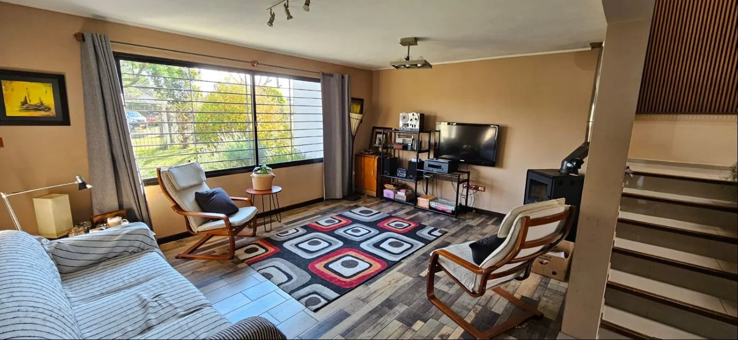 La casa se distribuye en 2 plantas: PB Living amplio cuadrado con gran ventanal, estufa de alto rendimiento, baño social, comedor integrado a la cocina, habitación de
