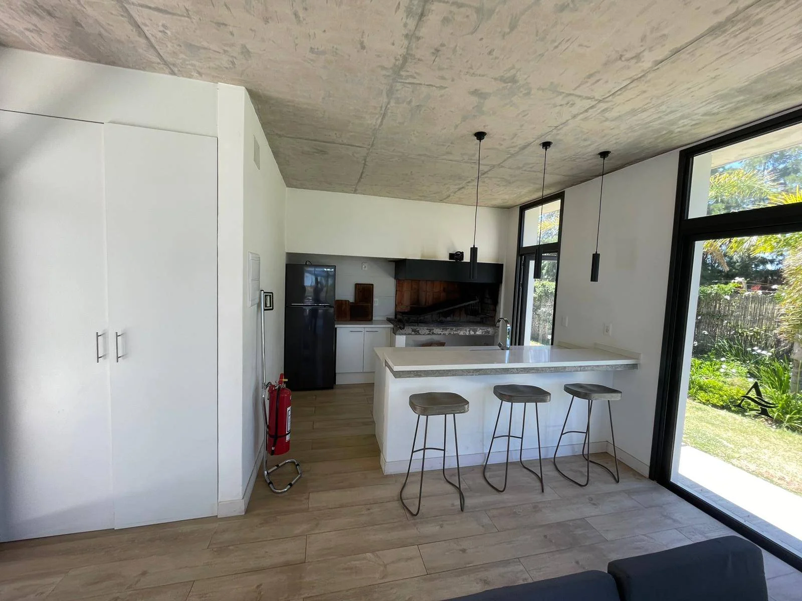 Un espacioso e iluminado living comedor con Toilette, estufa de leña de alto rendimiento y salida al patio con parrillero de uso exclusivo.