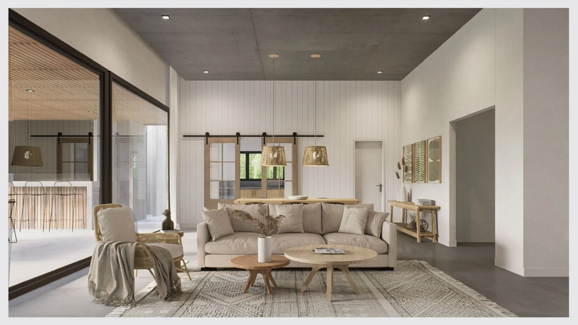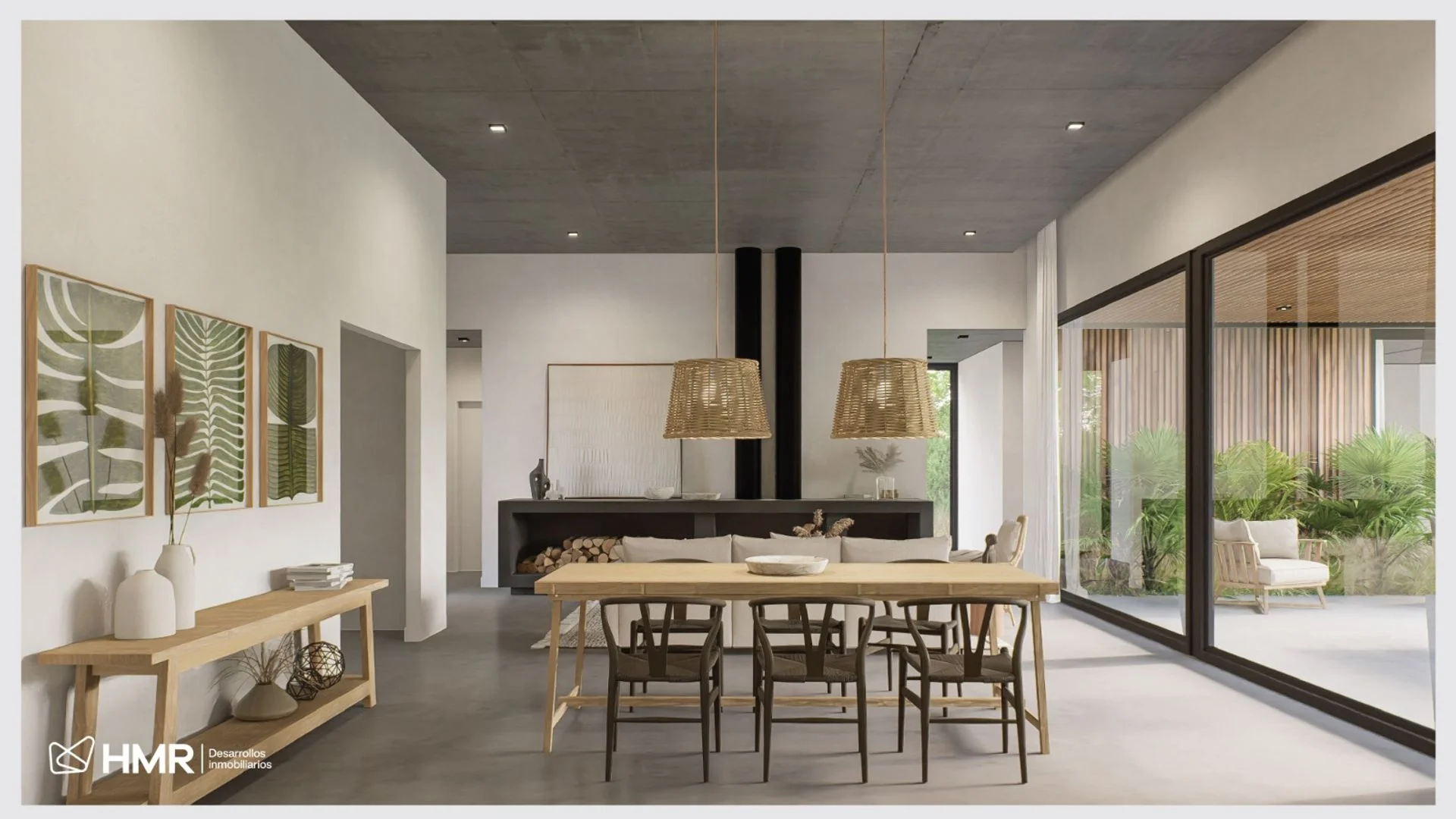 Superficie total 265 m² (170 m² interiores + 95 m² exteriores). Construcción en Steel Framing, aberturas PVC DVH, previsión de aire acondicionado en todos los ambientes, estufa de alto rendimiento, cochera techada para 2 autos y lavadero independiente.