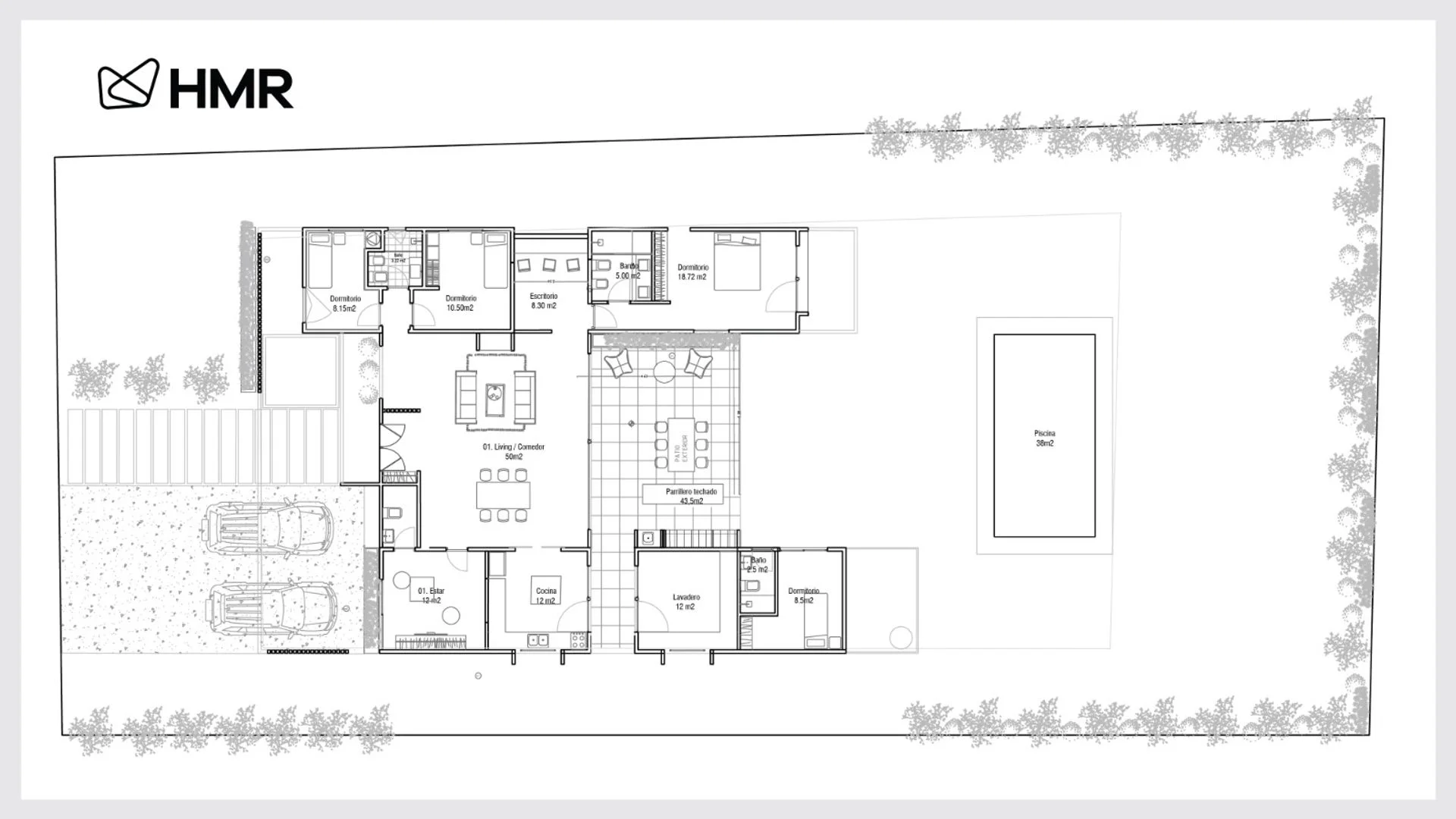 Moderna casa de 1 planta desarrollada por HMR, empresa con más de 20 años de experiencia. Ubicada en la primera etapa del barrio, con excelente orientación noreste y vistas únicas hacia Campo de la Tahona y la zona ecuestre.