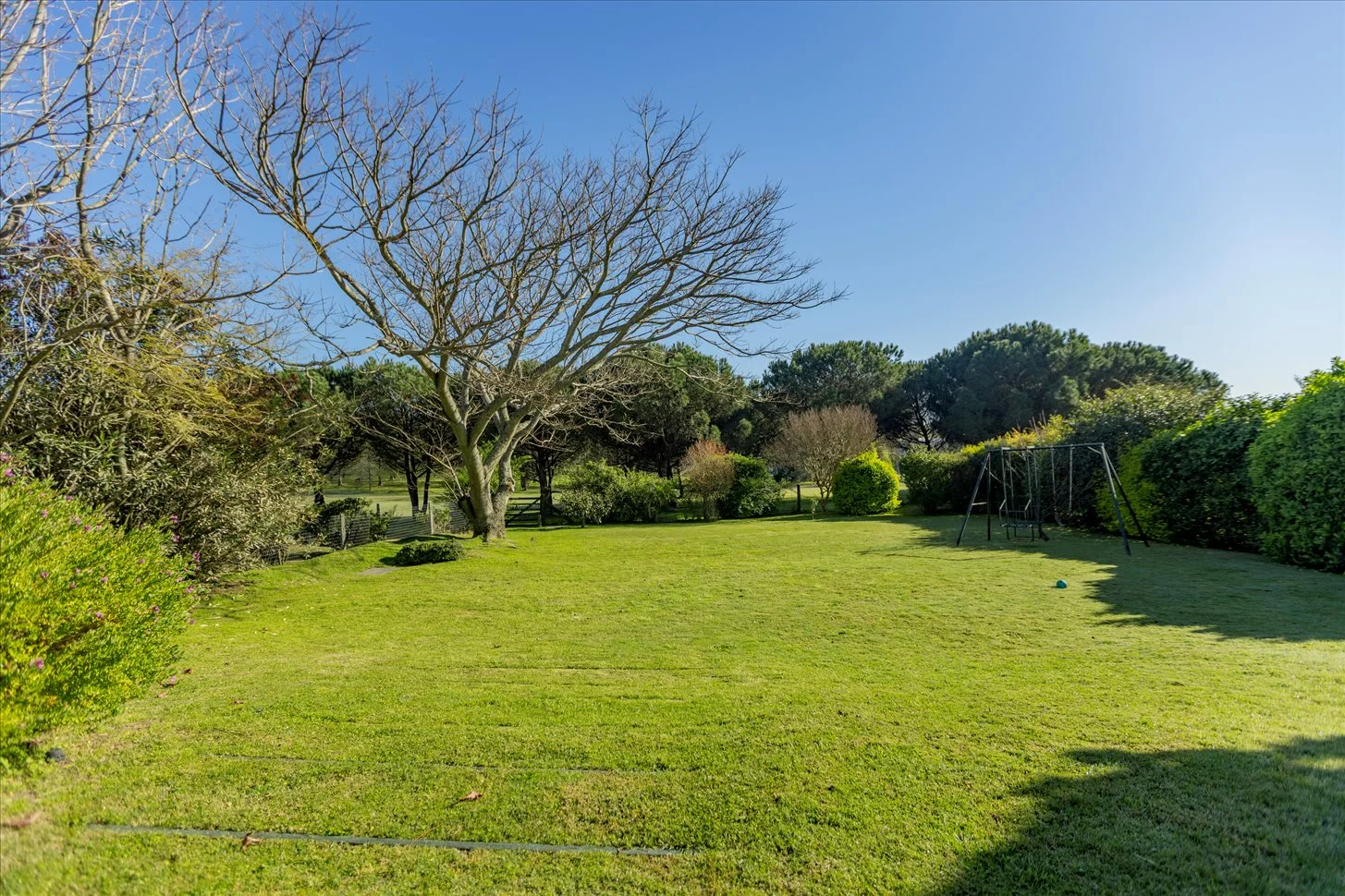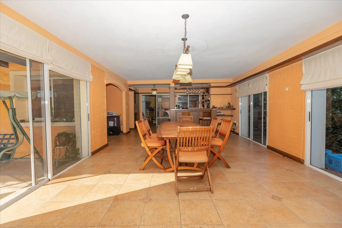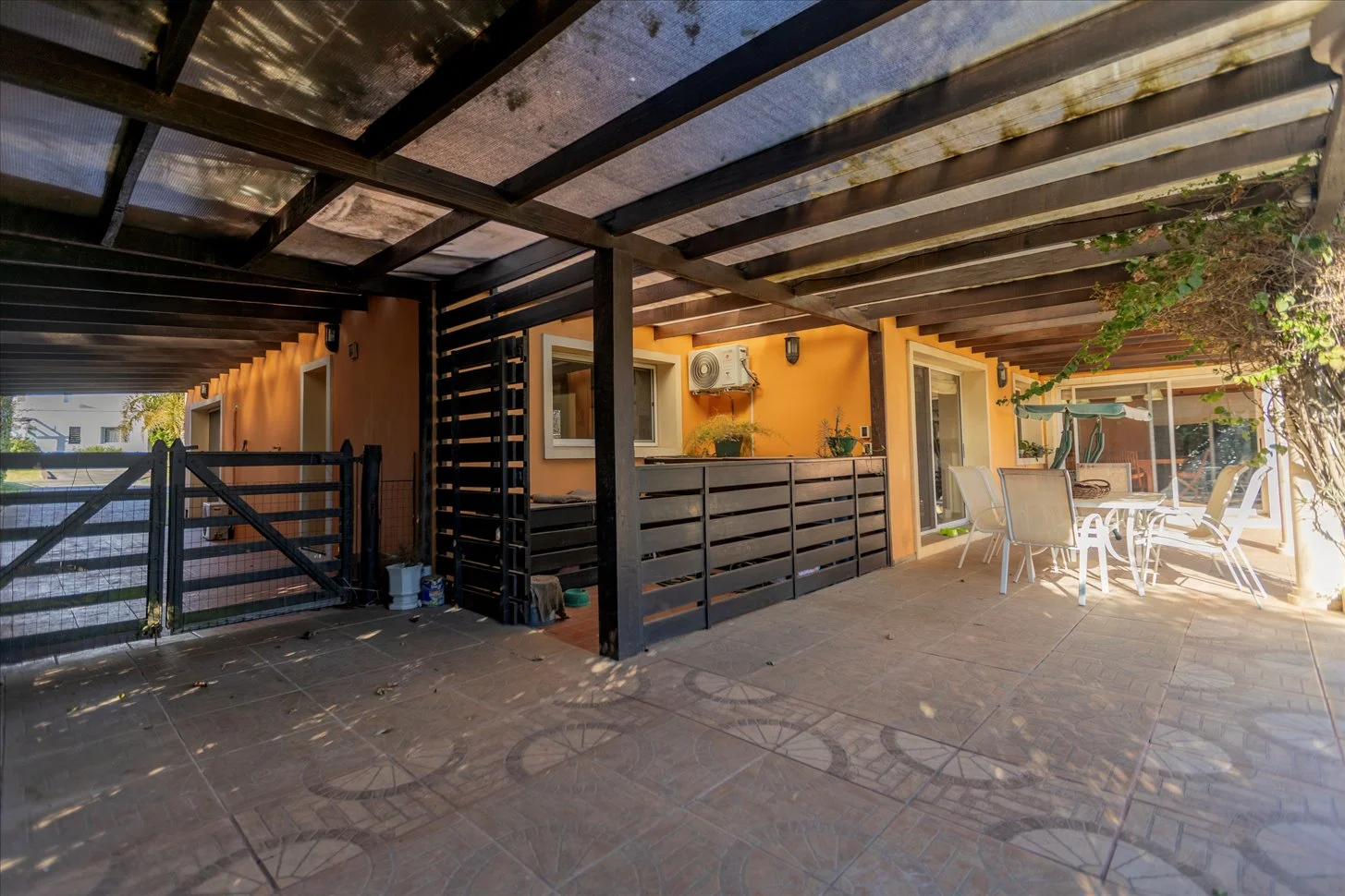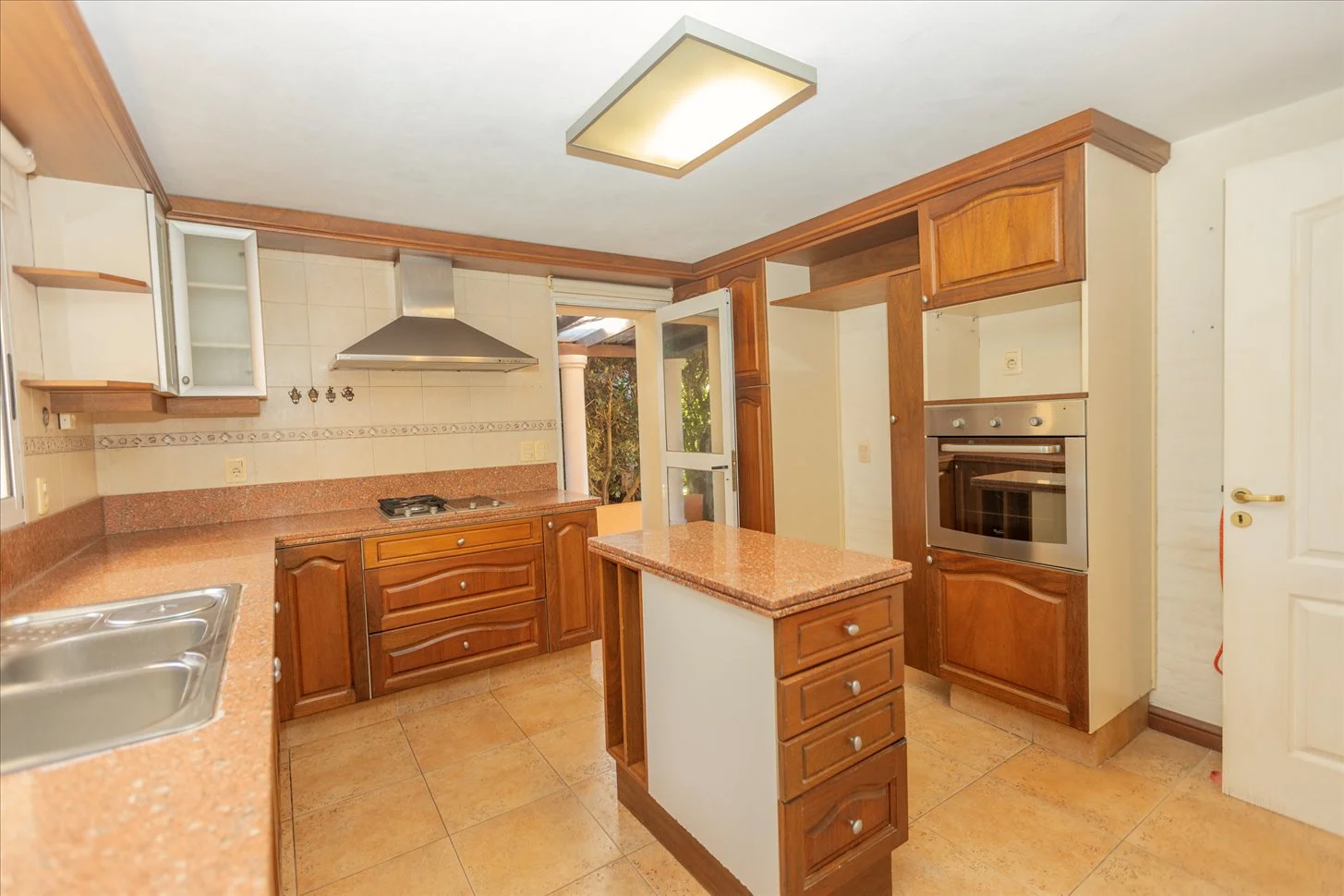 La cocina completa con isla se comunica con entrada lateral con cochera abierta para al menos cuatro vehículos o galería disfrutable en verano. Desde la barbacoa cerrada se accede a amplio patio con pérgola de madera, otro parrillero y espacio para estar y comedor disfrutable en días de sol, junto con el amplio jardín cerrado por vegetación.