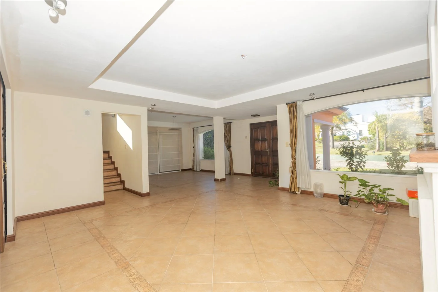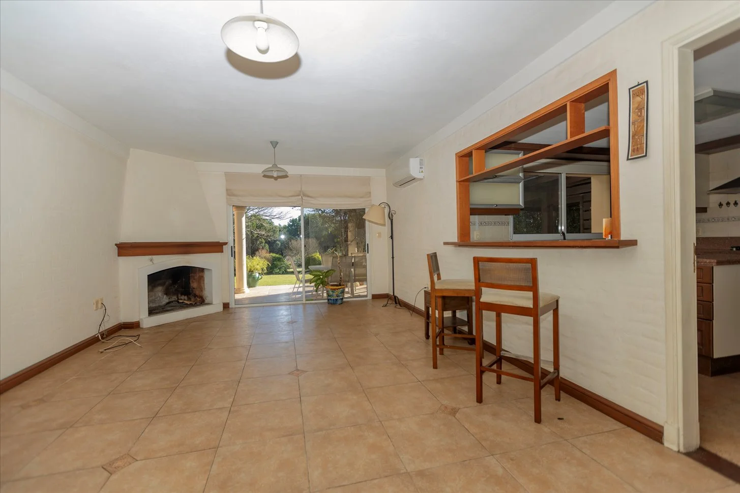 En planta baja con living comedor de gran tamaño con amplios ventanales al jardín con estufa a leña, baño social, estar amplio con estufa a leña que se comunica con la cocina y con amplia barbacoa con parrillero y estar con estufa a leña y baño social, acceso interno a garaje cerrado para 4 autos, con amplios ventanales al jardín lateral.