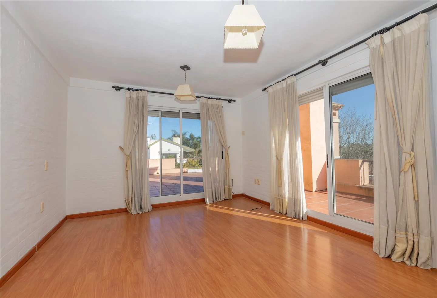 En planta alta, accediendo a través de cómoda escalera se ubican tres dormitorios, dos al frente que comparten un baño desde los dormitorios y otro en suite con vestidor y baño completo con jacuzzi, desde el cual se accede a amplia terraza de 60 m2 ideal para las tardecitas de calor, con hermosas vistas. A esta terraza también se accede desde uno de los dos dormitorios al frente, el otro tiene acceso a balcón terraza. Amplio fondo verde y despejado, totalmente cerrado. Excelente ubicación dentro del barrio, con muy buen asoleamiento e iluminación natural.