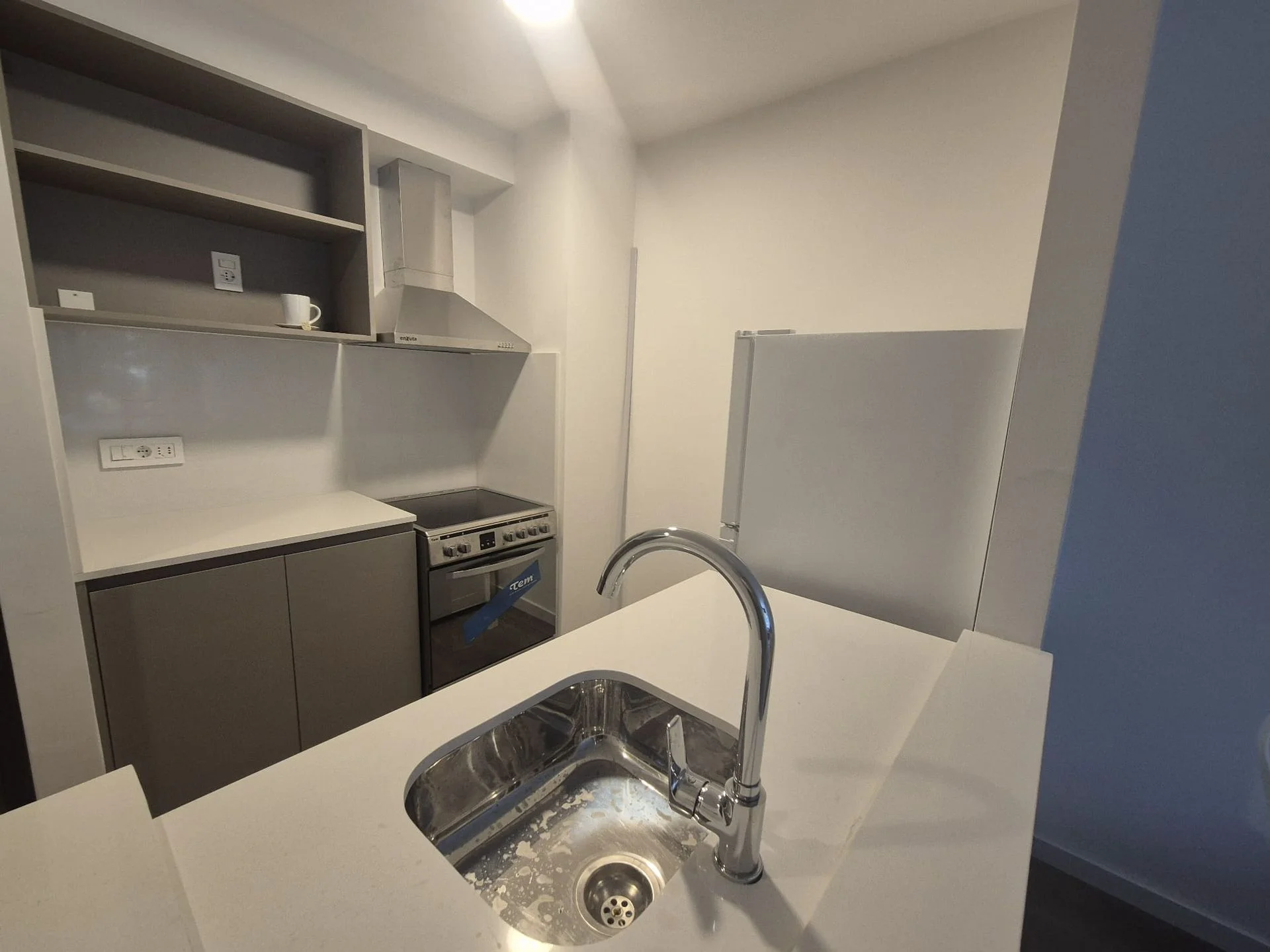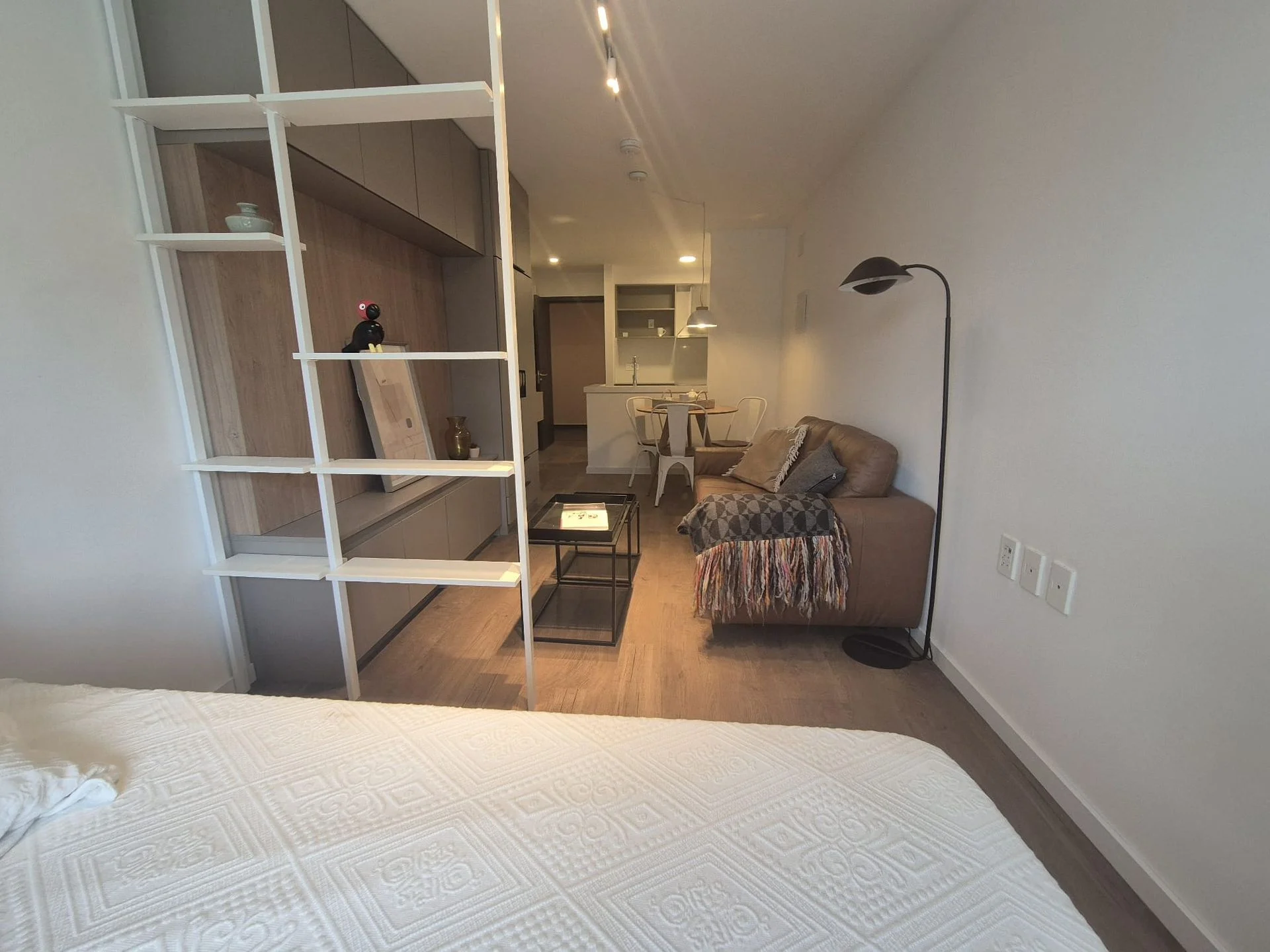 Cocina con aereos y bajo mesada integrada a un cómodo espacio de 29 mts que comunica con balcón al frente de 2 metros con vista despejada