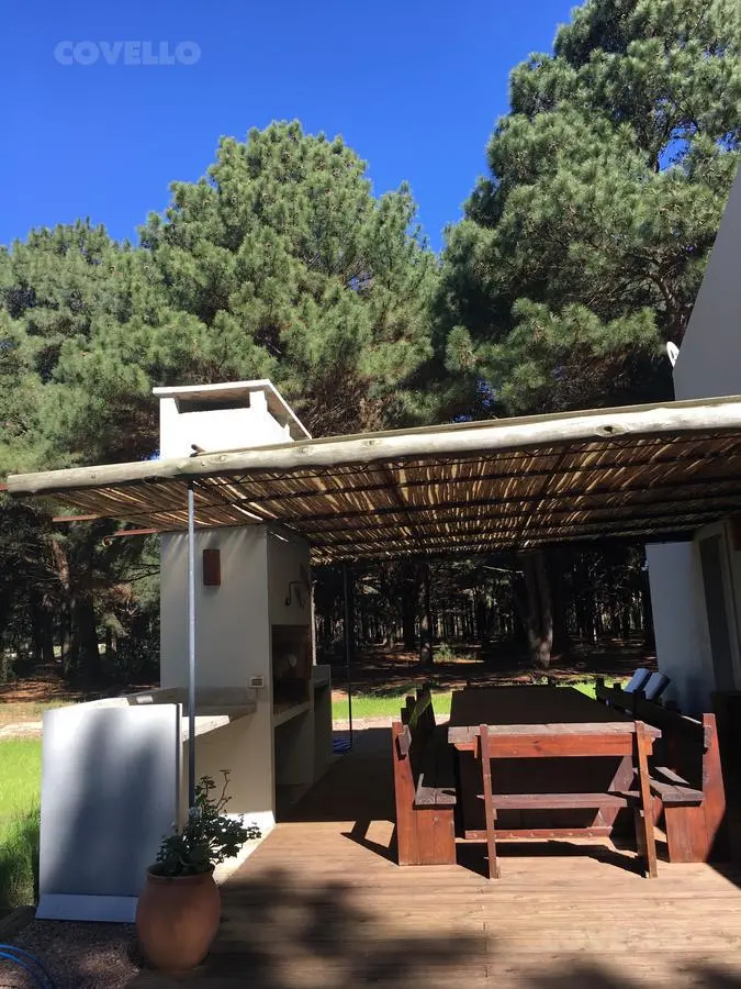 Construida en una planta , 3 Ambientes , para 5 personas , dos Habitaciones con Baño , Toilette , Living ,Estufa a Leña , Cocina Americana , Galeria , Parrilla ,WiFi , Lavadero, Antena Satelital , Cochera para 2 autos