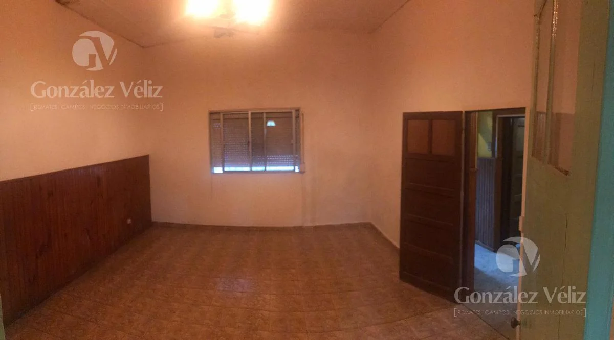 Compuesta de dos dormitorios o posible local comercial, cocina con muchos muebles sobre y bajo mesada, living con estufa a leñas, comedor, 1 baño y patio al fondo.