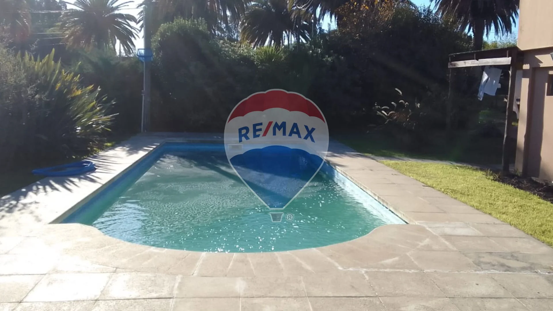 Piscina climatizada rodeada de jardín