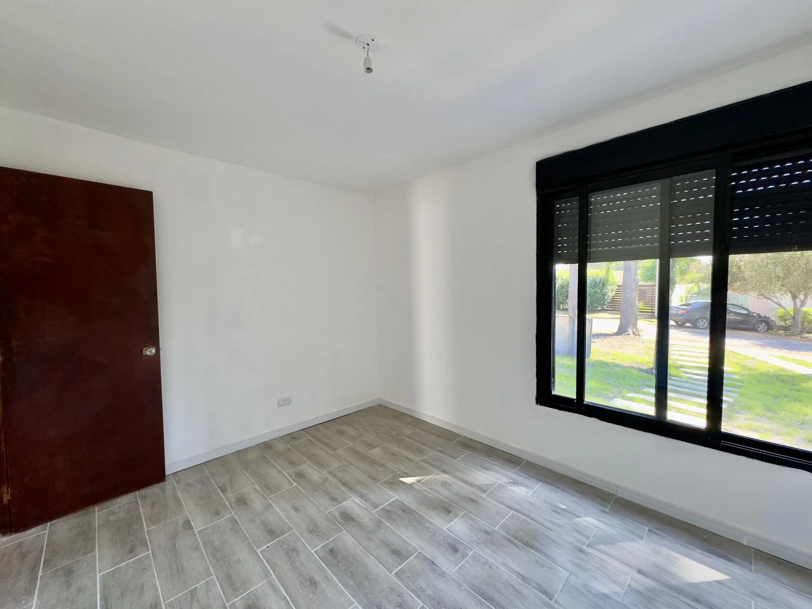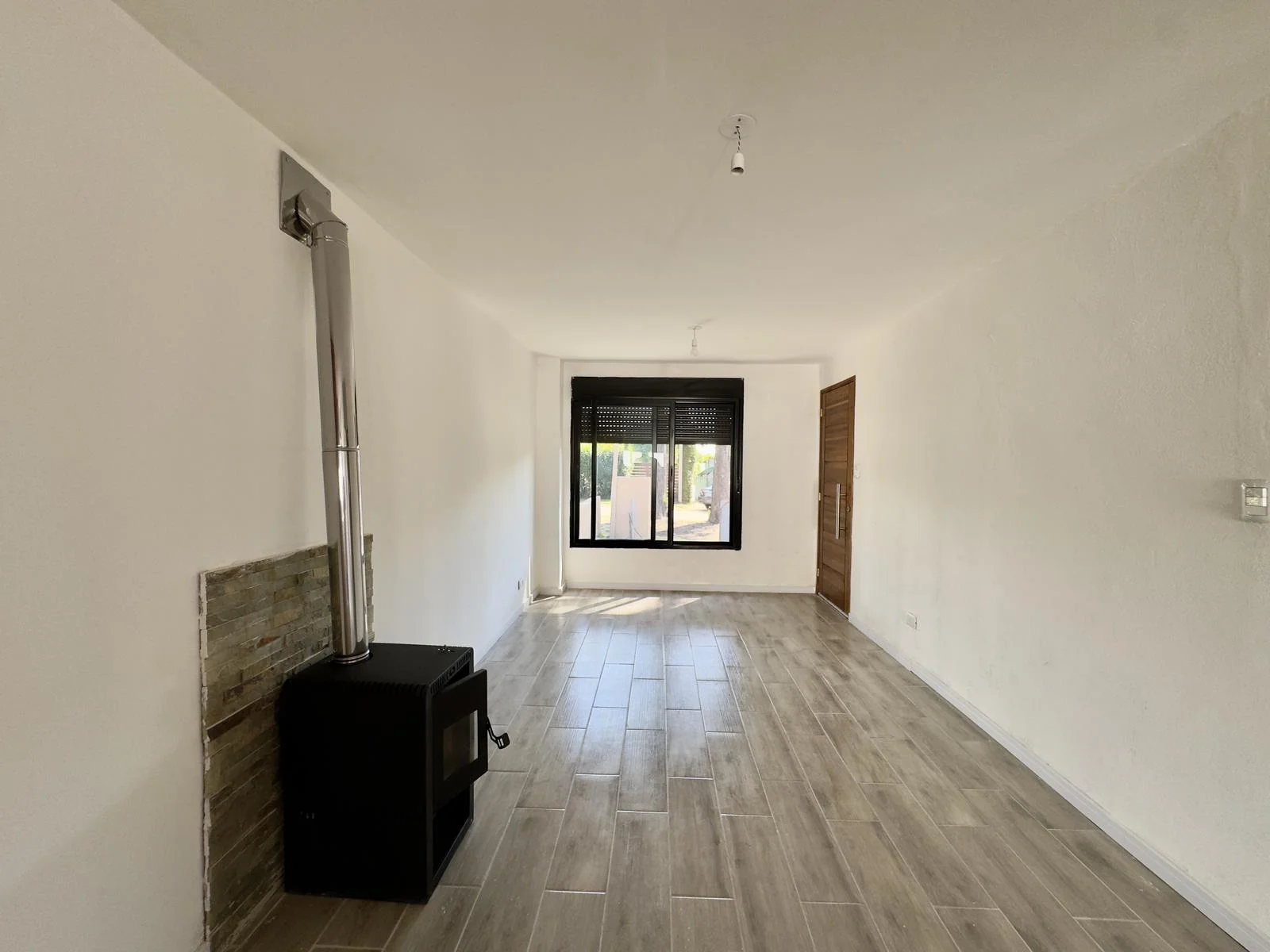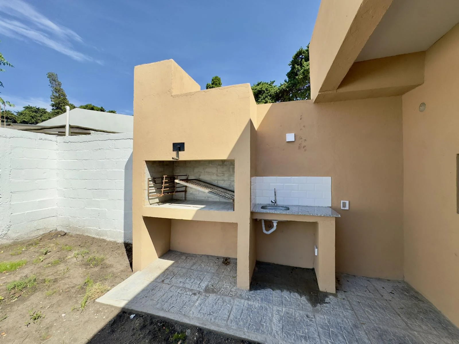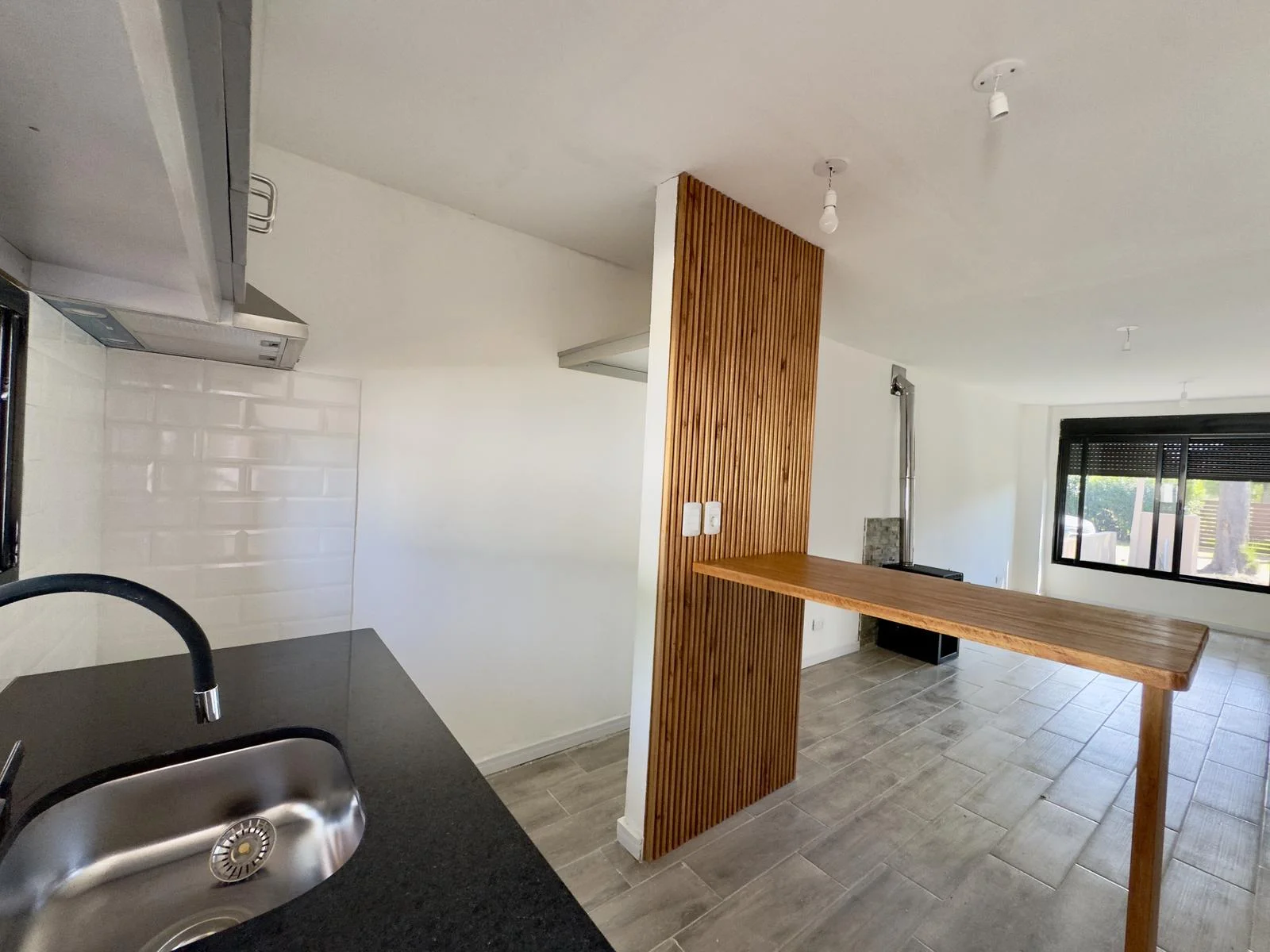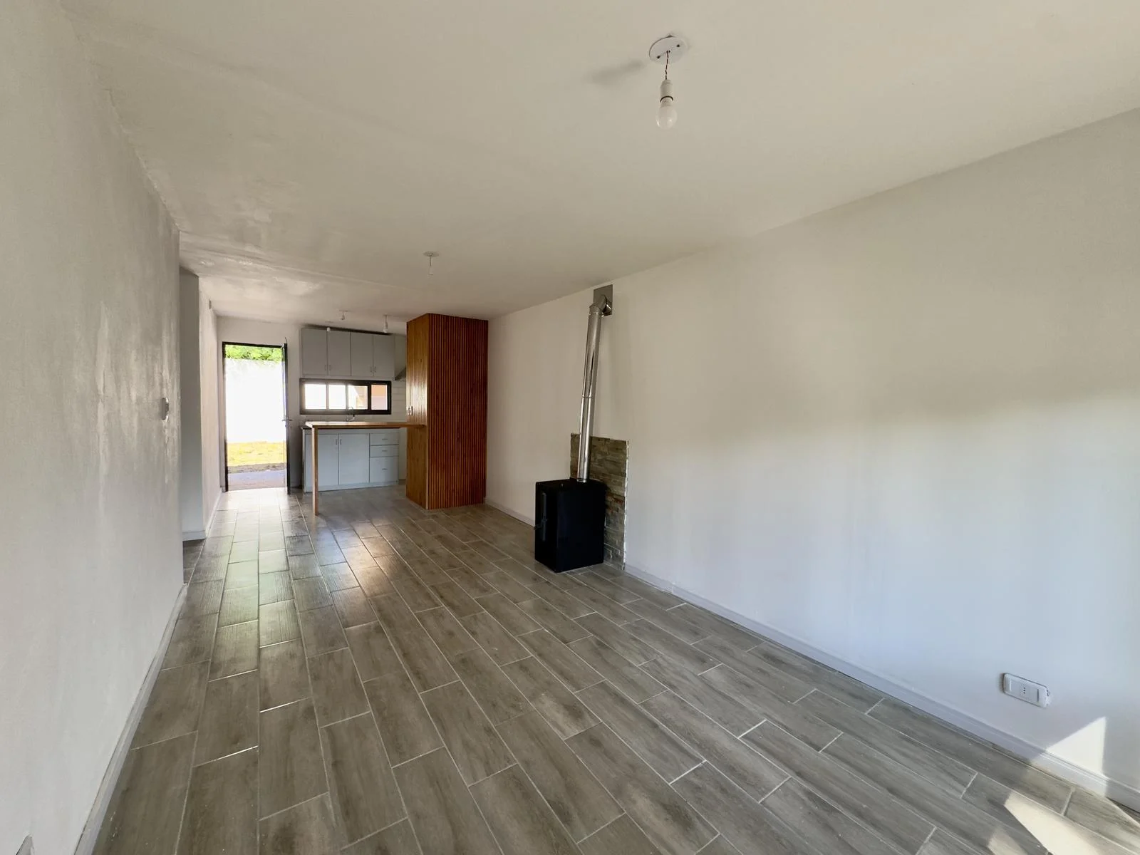 - 2 cómodos dormitorios con persiana de enrollar, aberturas de aluminio negro - Living - comedor con calefactor a leña ecológico - Cocina integrada con mobiliario a medida excelente carpintería, campana extractora - Baño completo con termofon - Patio trasero con parrilla completa y mesada con instalación para lavarropa - Cochera - Jardín al frente