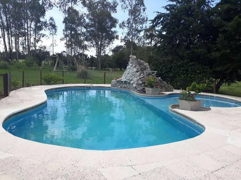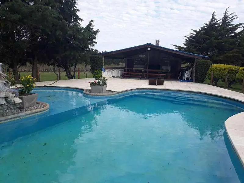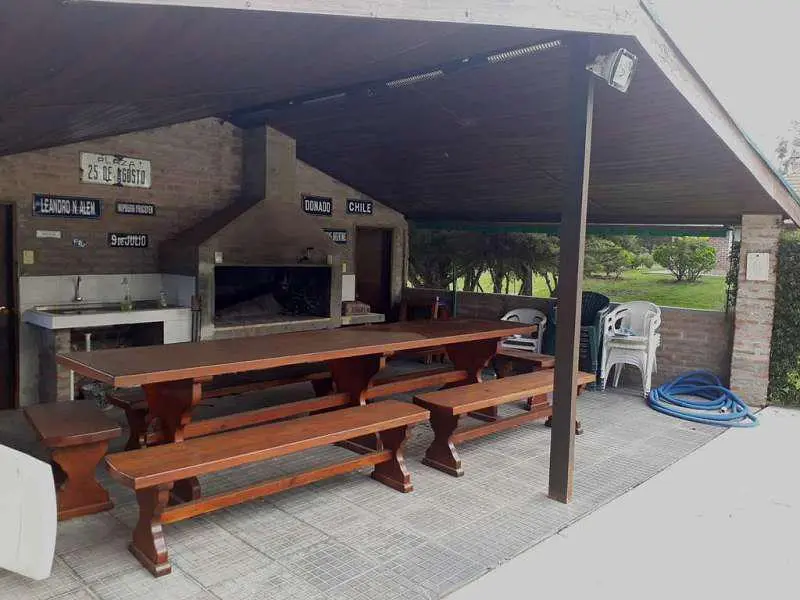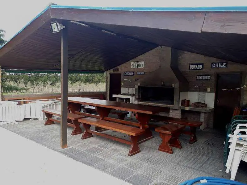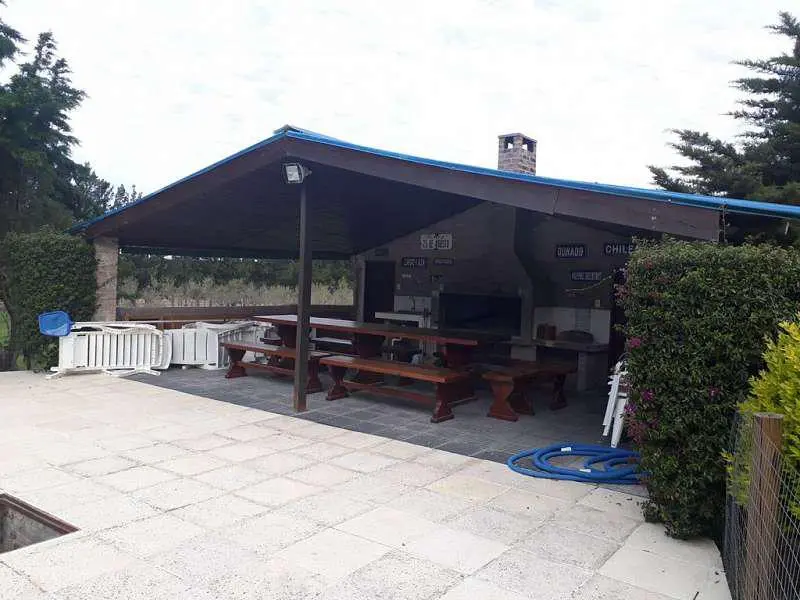 Barbacoa techada (40 m2) con parrillero, baño y depósito, amplia piscina con solarium.