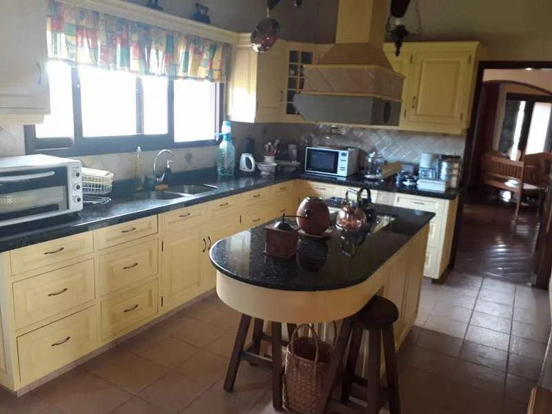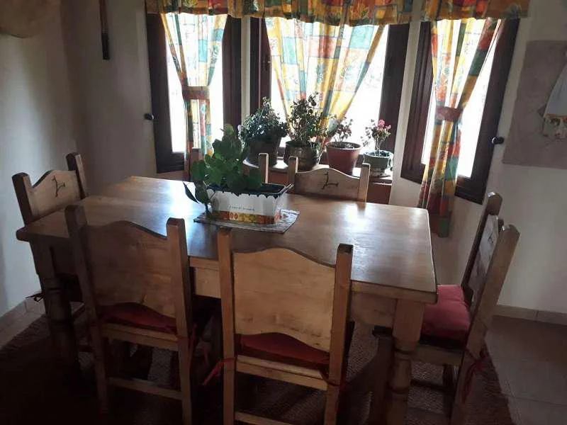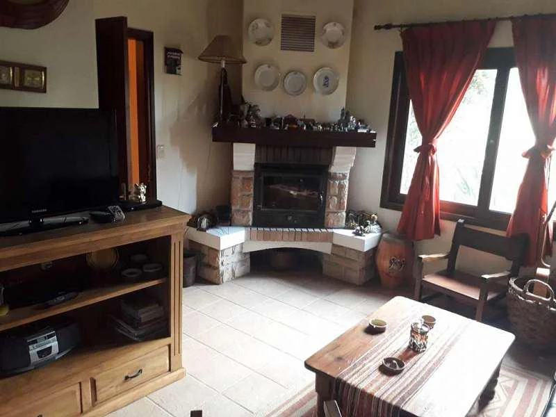 Casa principal (220 m2): living, comedor, 3 dormitorios (1 en suite con vestidor), 2 baños completos, cocina con isla y comedor diario integrado, estar intimo con estufa a leña.