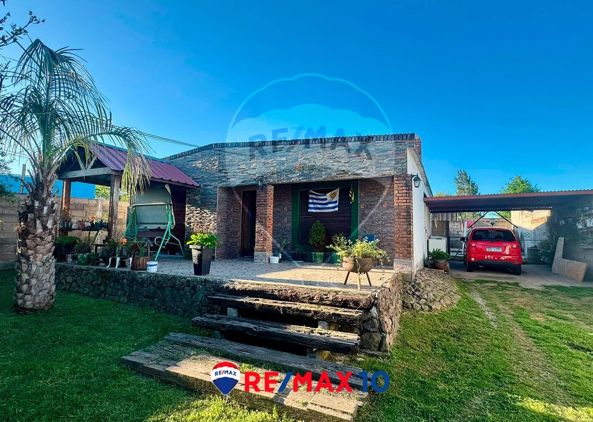 Linda propiedad con lindo frente de cesped y arboles, cuenta con living, comedor, cocina, dos dormitorios, garaje fondo con piscina chica y galpon