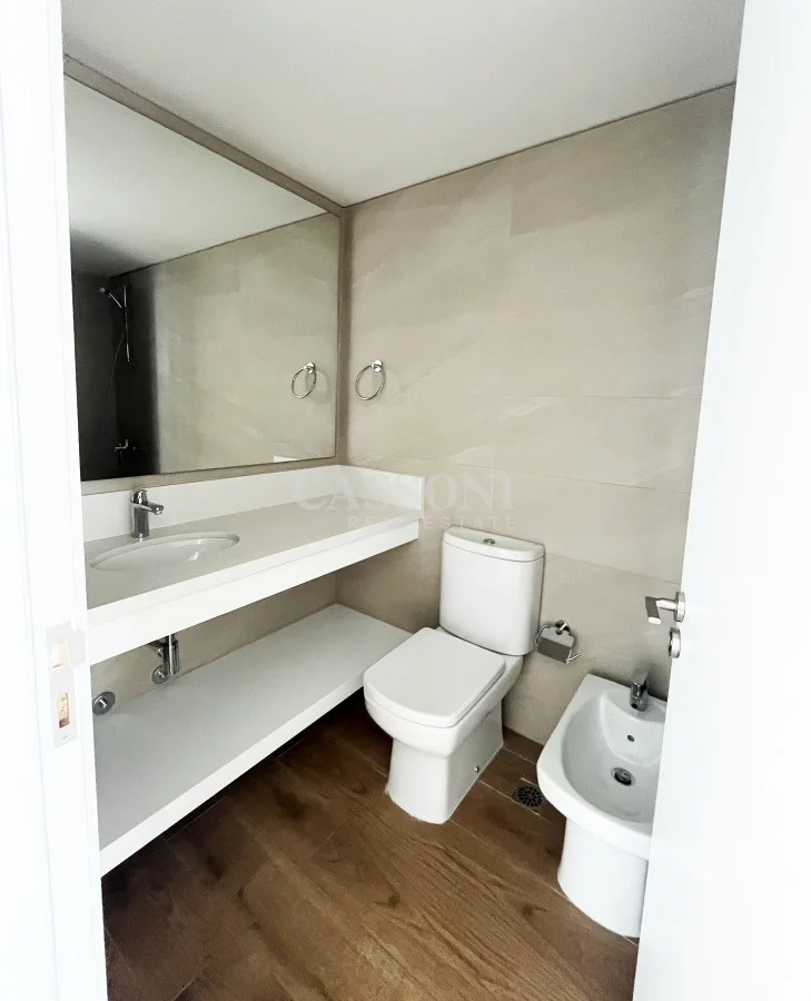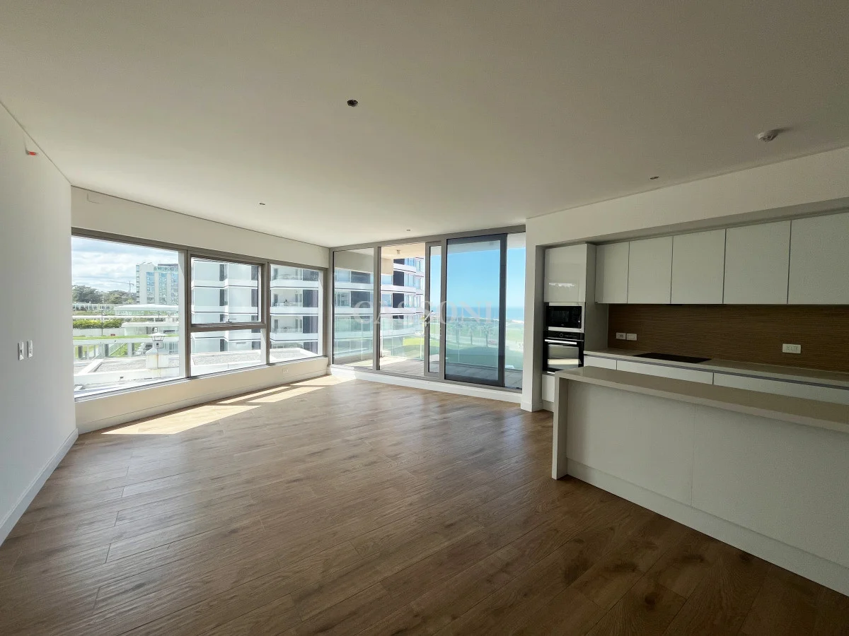 Con una superficie de 160 metros, este departamento ofrece 2 dormitorios en suite más toilette. Cocina integrada al amplio living comedor con una hermosa vista a la playa Brava. Area de Servicio, y balcón. Aire acondicionado central.