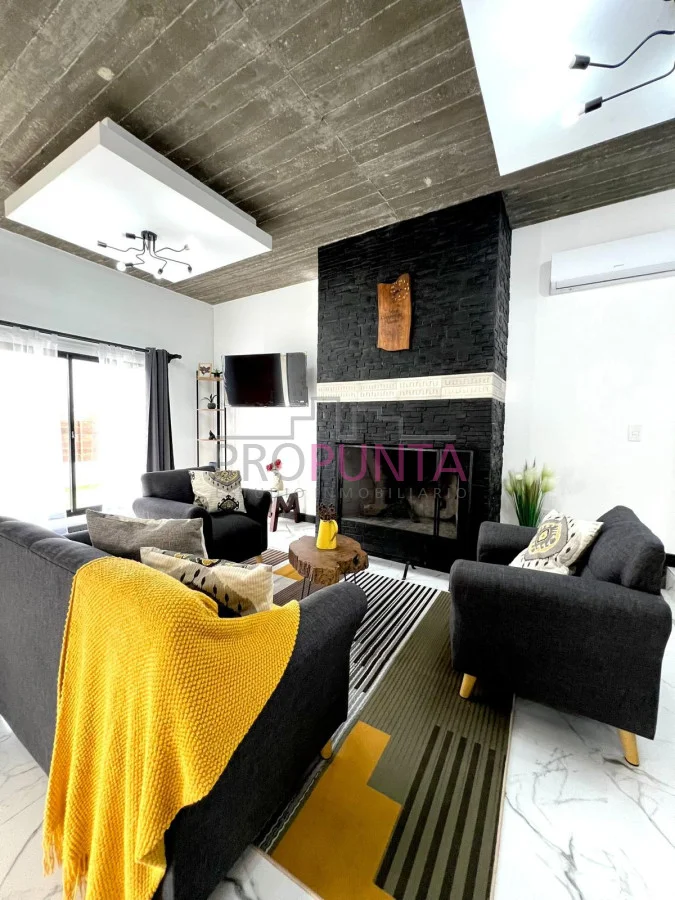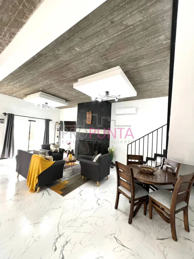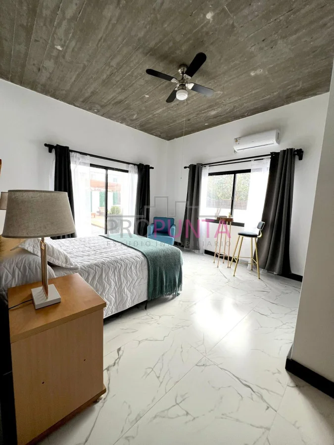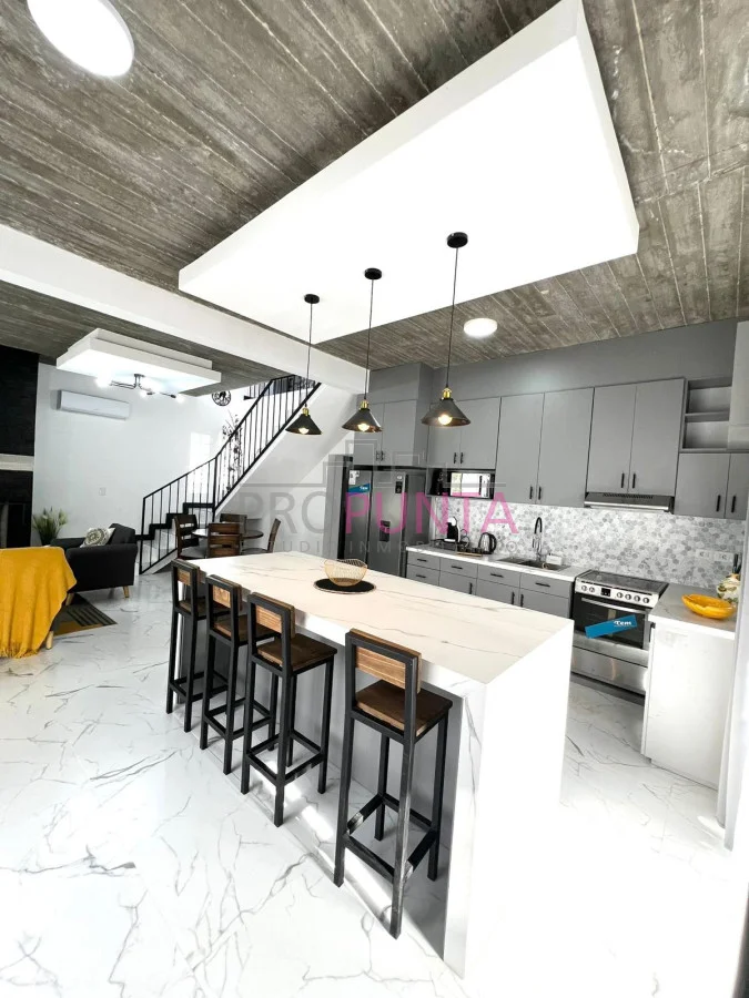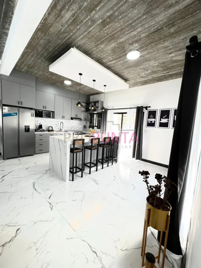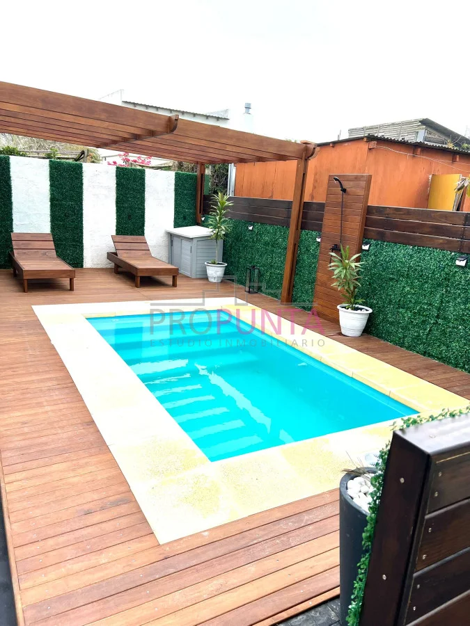 La casa cuenta con 4 amplios dormitorios, incluyendo 1 en suite, 2 baños completos y un baño social en el interior y un baño en el área de la piscina, ofreciendo comodidad y privacidad para 9 personas. Su cocina semi-integrada con una preciosa isla en medio se conecta con un luminoso living, creando un espacio ideal para compartir y relajarse después de un día de sol y mar; además de un precioso entorno exterior con piscina y parrillero para el disfrute de los asados en familia.