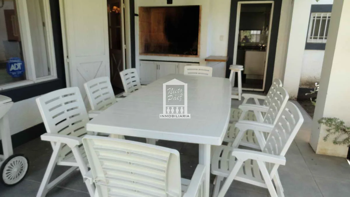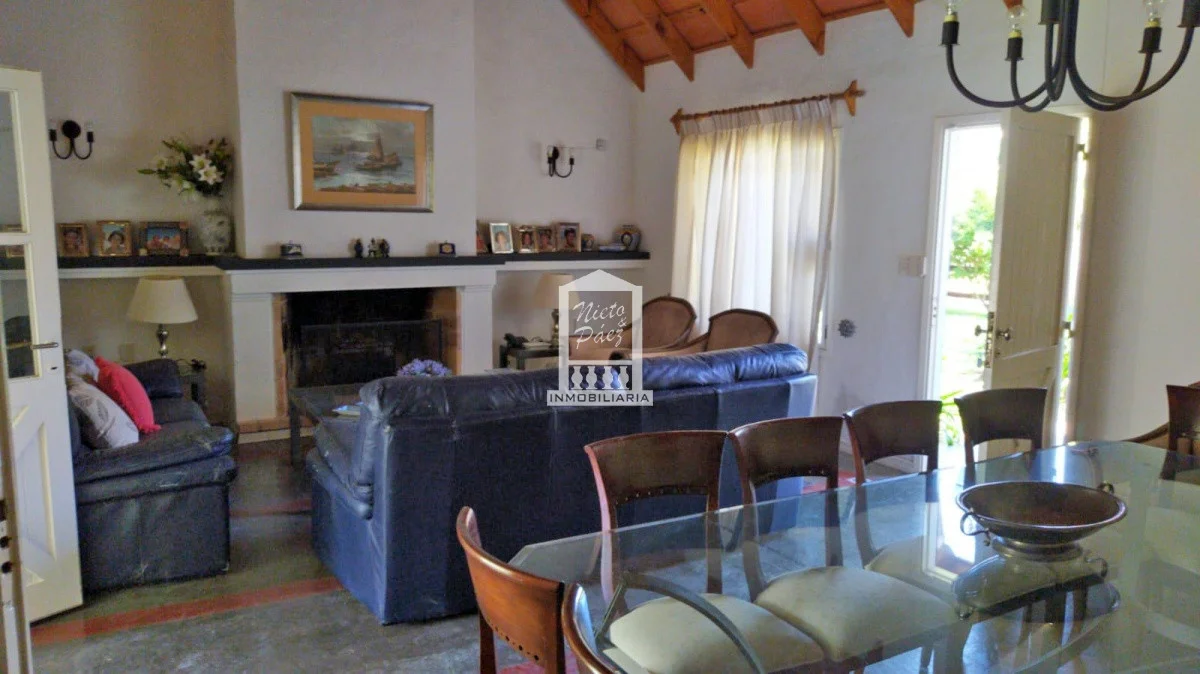Desarrollada sobre un generoso terreno de 898 m², la casa ofrece espacios amplios y luminosos. Cuenta con tres dormitorios, destacándose la suite principal, dos baños completos, además de una dependencia de servicio independiente con baño. El área social se compone de un living-comedor cálido, con estufa a leña y grandes ventanales que integran el interior con el exterior, generando una conexión fluida hacia la galería techada con parrillero.
