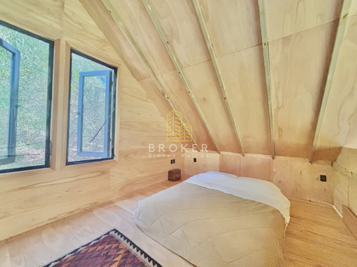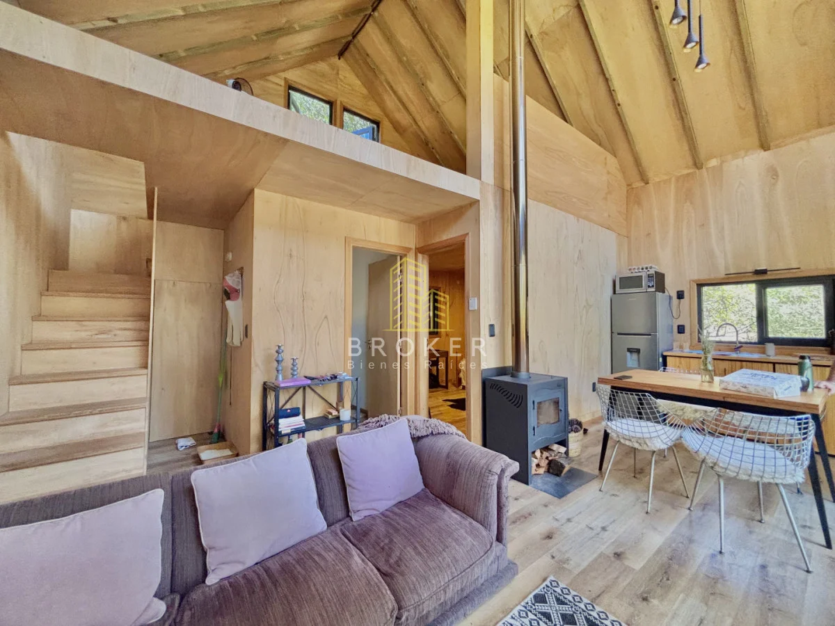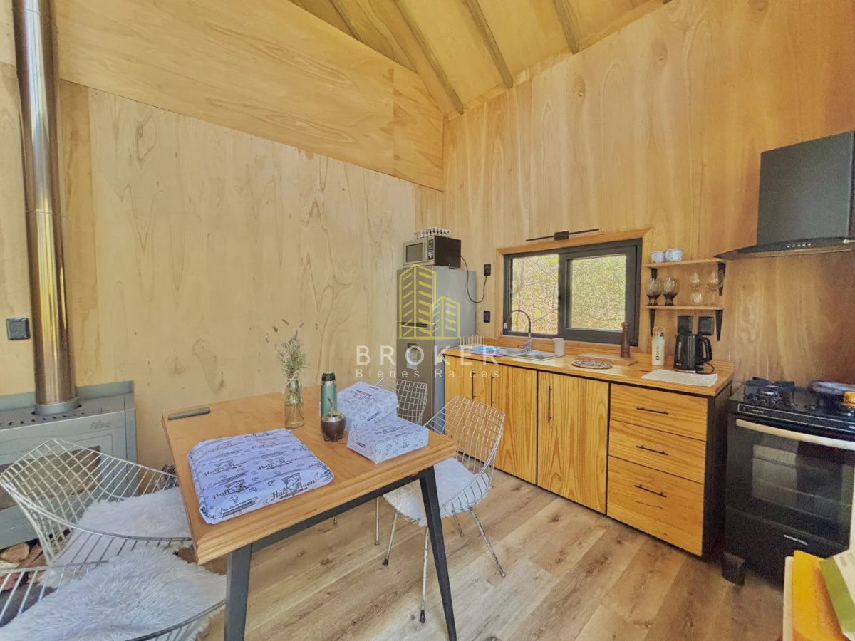 Planta principal living comedor con estufa a leña; cocina integrada, un dormitorio y un baño completo. En la segunda planta se encuentra un cómodo emtrepiso que oficia como segundo dormitorio con cama matrimonial.