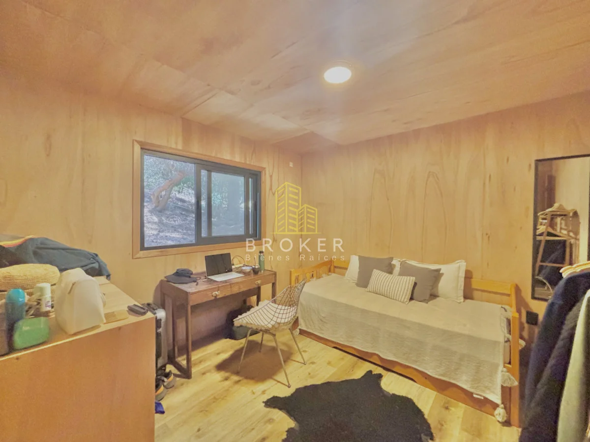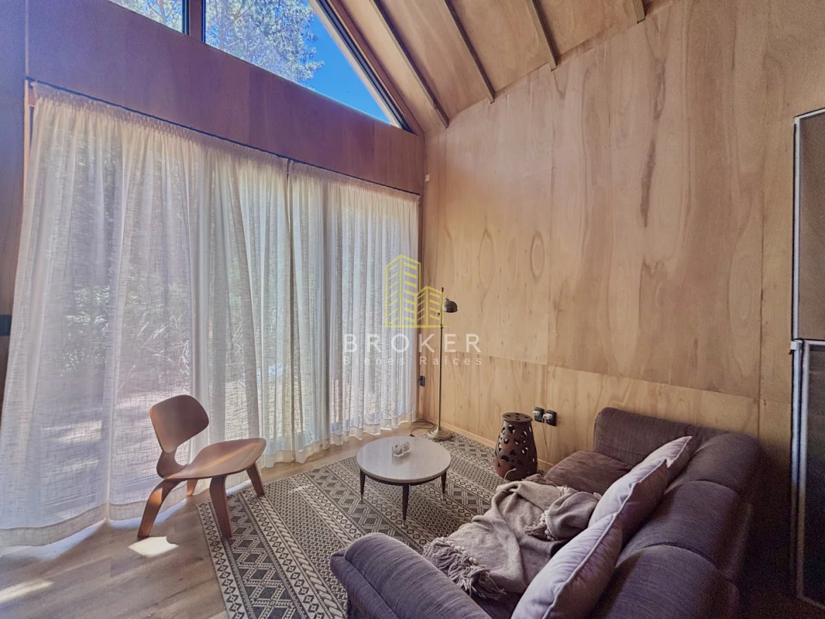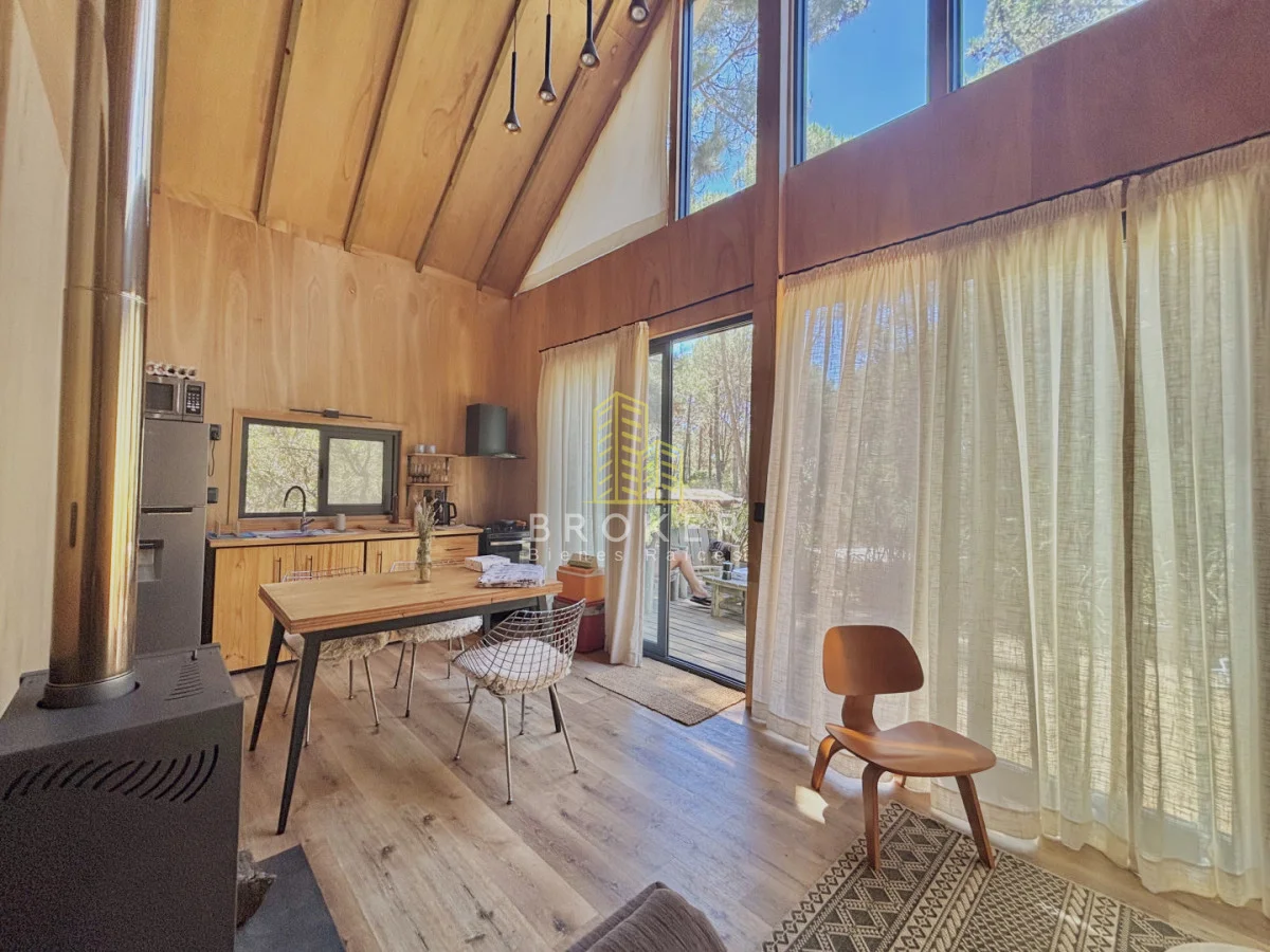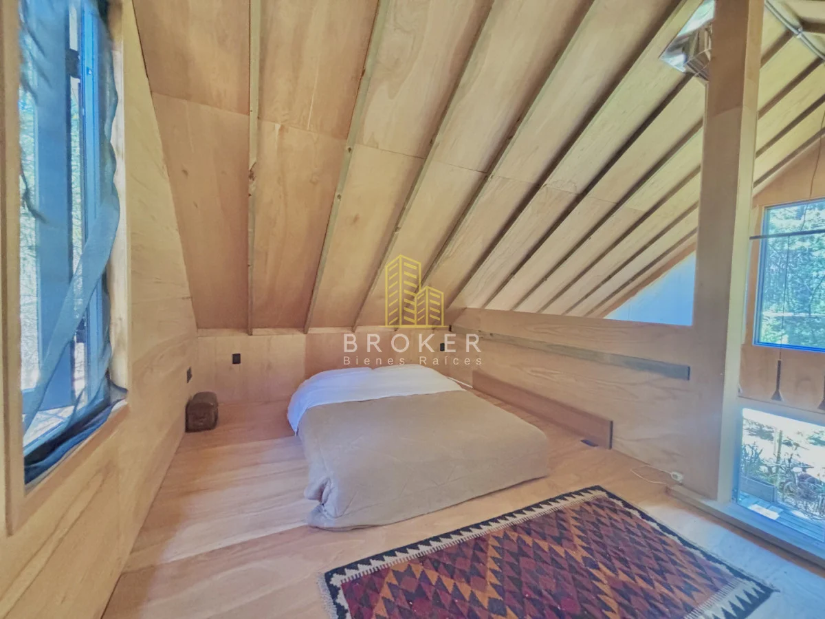 Planta principal living comedor con estufa a leña; cocina integrada, un dormitorio y un baño completo. En la segunda planta se encuentra un cómodo emtrepiso que oficia como segundo dormitorio con cama matrimonial.