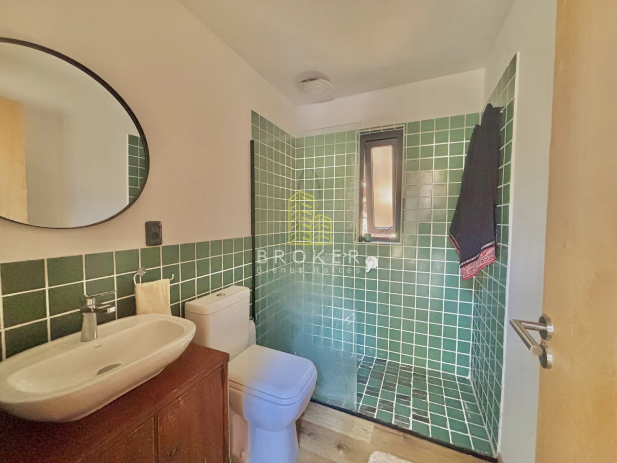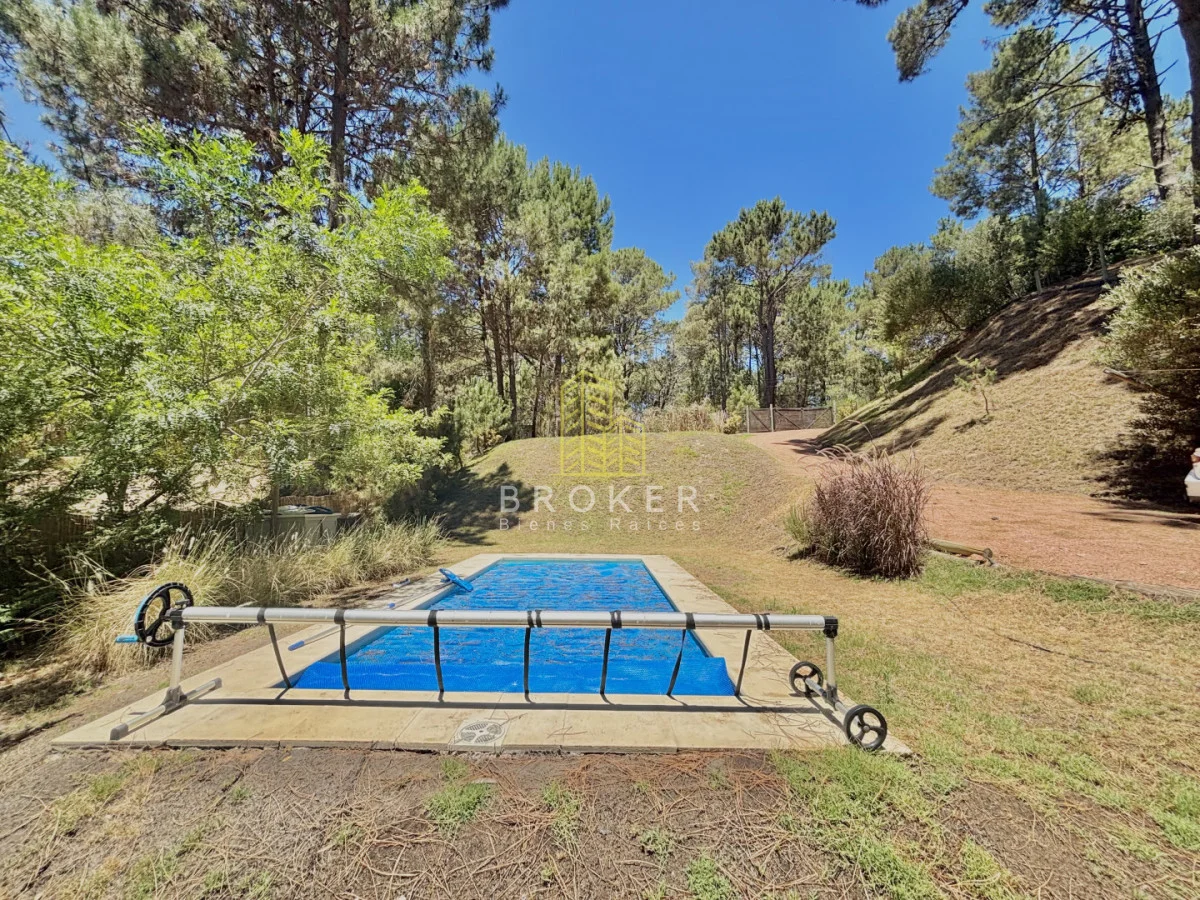 En el exterior cuenta con un deck al frente, amplio jardin con mucha vegetación, pérgolas, piscina climatizada y baño.