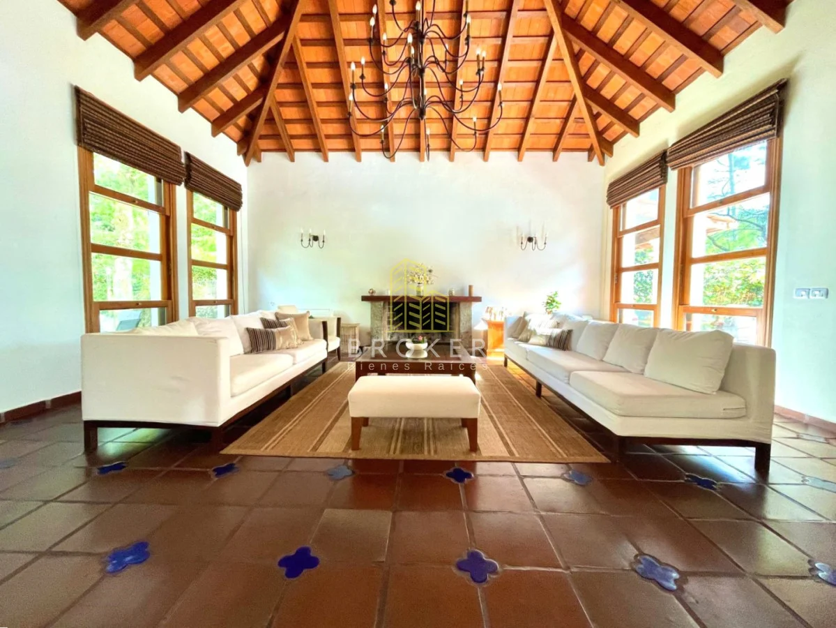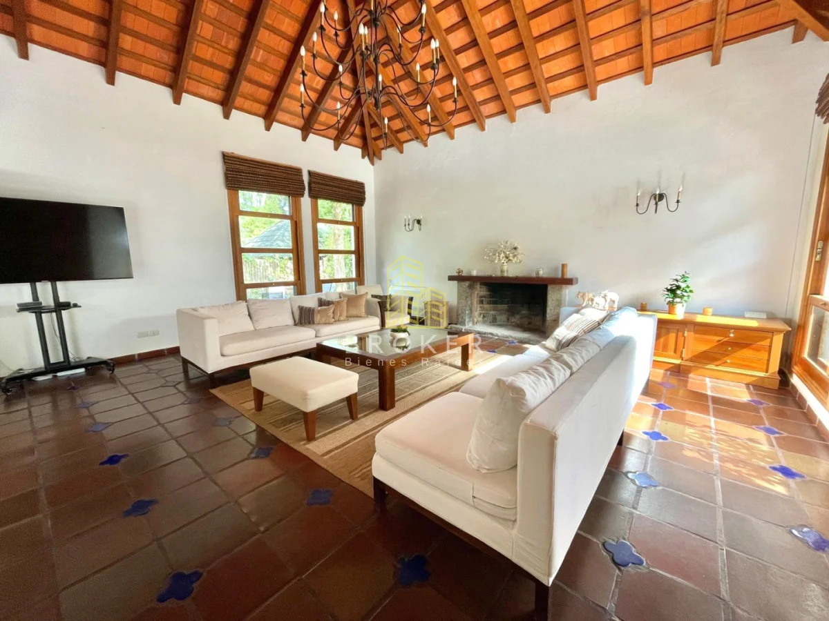 Cocina definida, comedor para 10 personas y amplio living de techos altos.