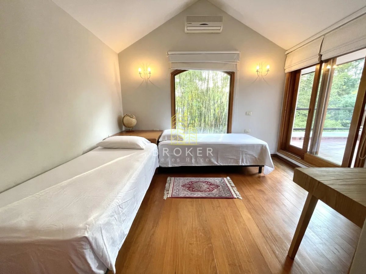 El Chalet se desarrolla en dos plantas, 2 dormitorios en suite en planta alta con terrazas. Y 2 dormitorios con 2 baños en planta baja.