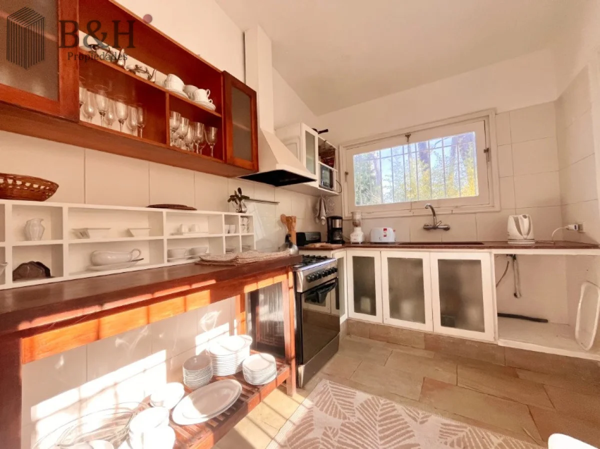 Con un diseño funcional y acogedor, esta propiedad, distribuida en dos plantas, cuenta con cinco cómodos dormitorios y dos baños completamente reciclados, ofreciendo espacio suficiente para alojar cómodamente hasta 9 personas. La amplia cocina se complementa con un luminoso living comedor con estufa a leña, y un estar recibidor diario.
